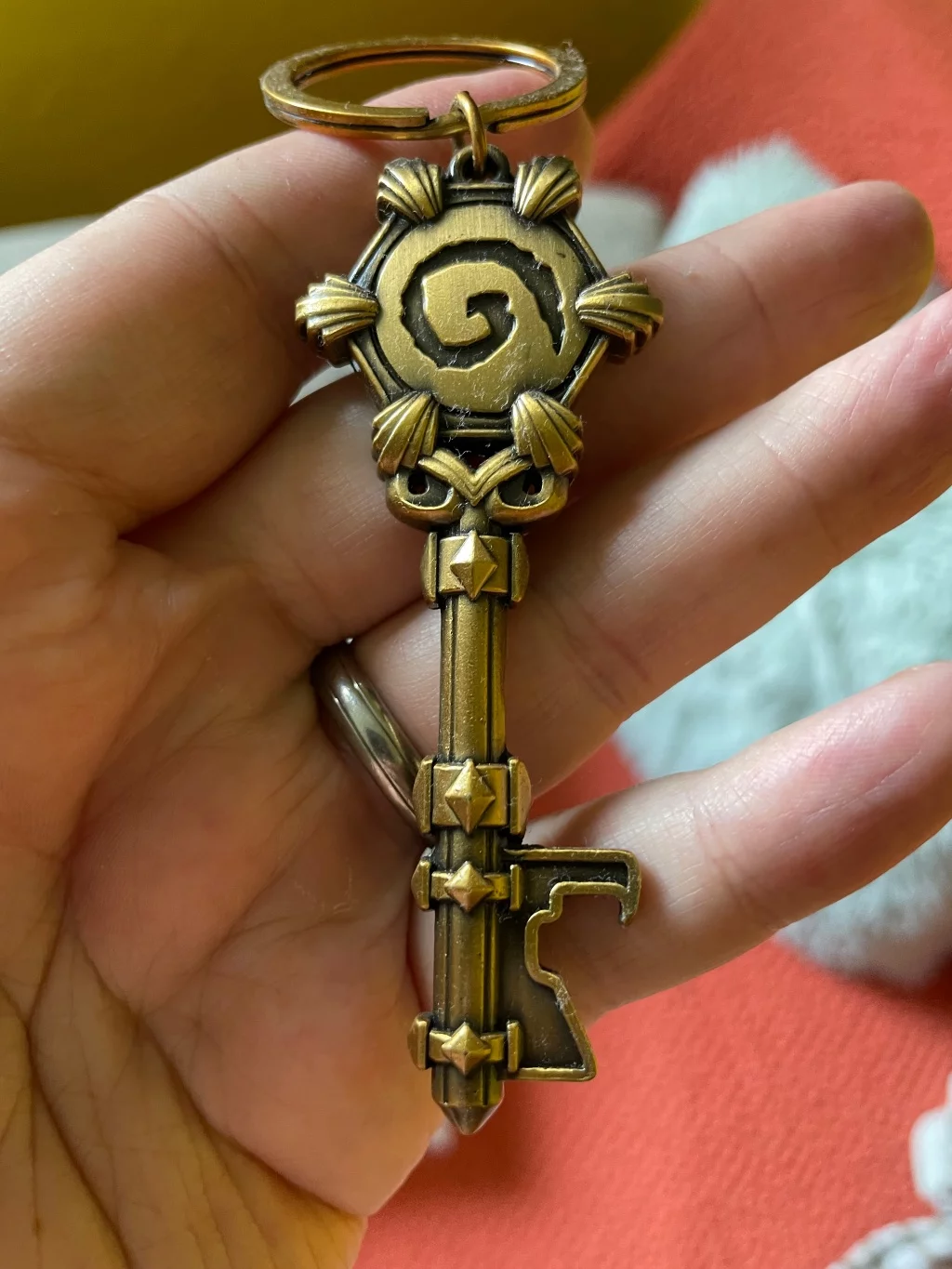 Oficiálně licencovaná klíčenka ve tvaru klíče od truhlice s odměnami ze hry Hearthstone od Blizzard Entertainment. Zároveň chytře slouží jako otvírák láhví!