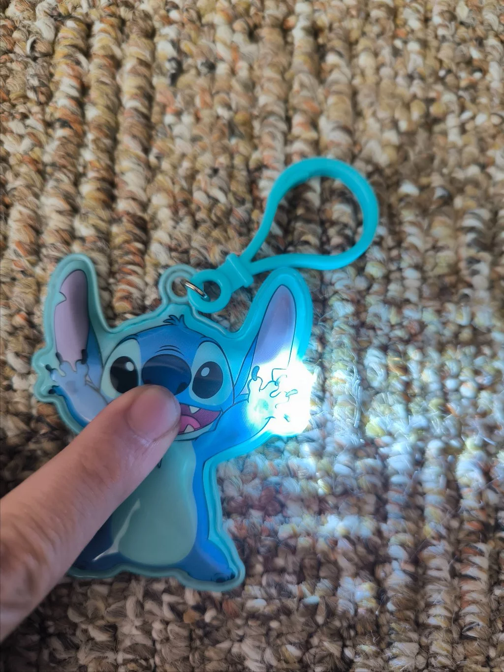 Klíčenka s motivem Stitche z Lilo & Stitch ukrývá malou svítilnu – roztomilý a praktický doplněk pro všechny fanoušky tohoto oblíbeného mimozemšťana.