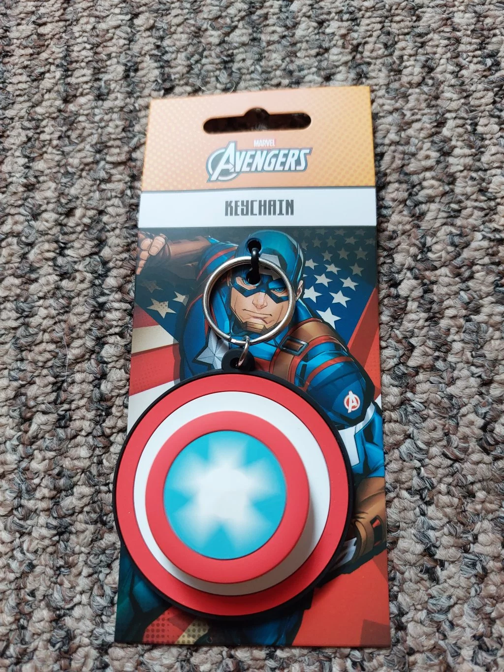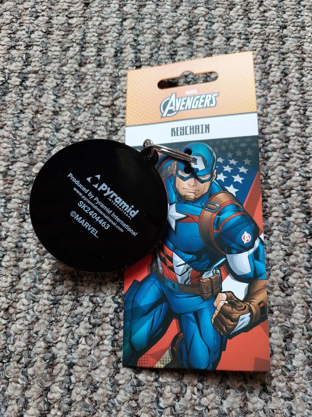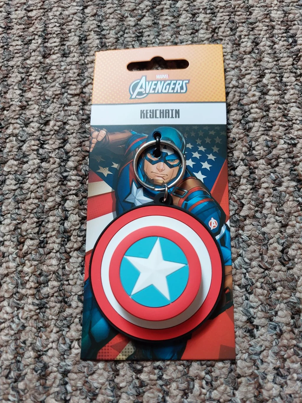 Tato gumová klíčenka s motivem Kapitána Ameriky ze série Avengers od Marvelu má velice dobré zpracování hlavně co se týče sytosti barev. Díky točícímu se středu může sloužit i jako taková "fidget spinner" hračka.