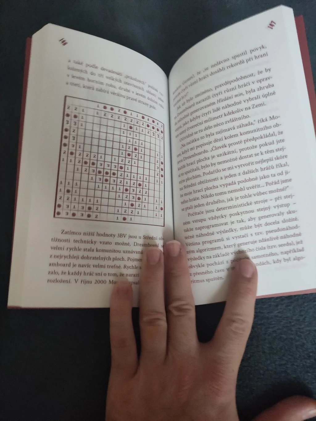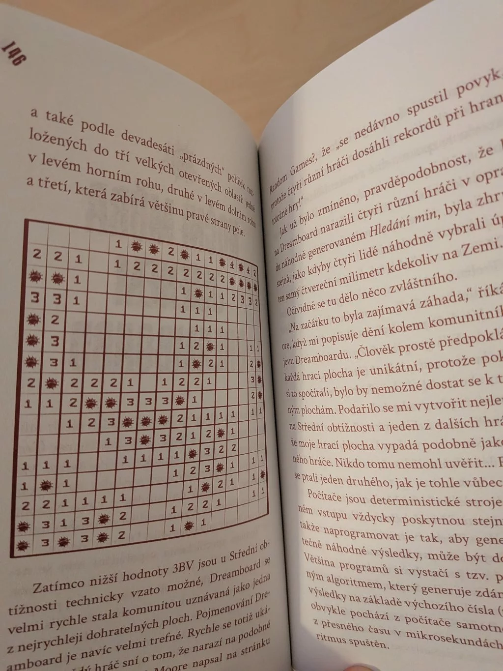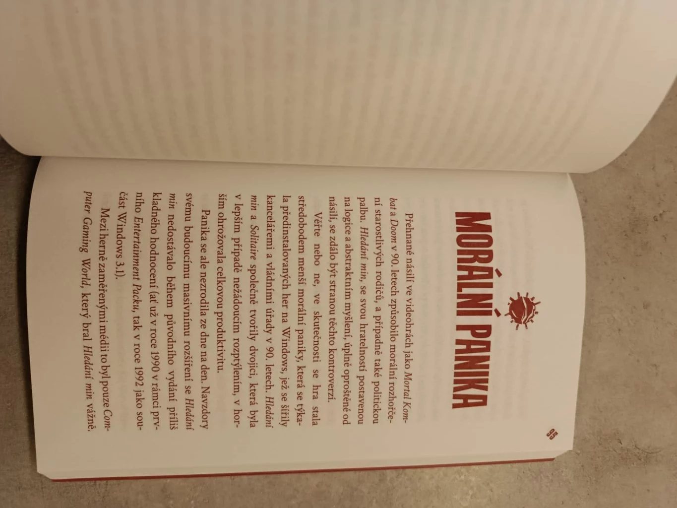 Pěkná útlá knížečka popisující historii jedné z nejhranějších logických her své generace. Orland odvádí dobrou práci popisem prekurzorů Minesweeperu ve Windows, jen škoda, že se téma rozhodl zpracovat až v roce 2023, kdy se musí odkazovat na vzpomínky pamětníků a internetové technologie přelomu milénia, které jsou na tom dnes také všelijak. Protože Minesweeper byl do značné míry zastíněn Solitairem, věnuje se kniha částečně také jemu. Popisuje různé aspekty od vzniku v rámci Windows Entertainment Packu, posedlosti Billa Gatese, vzniku a rozpadu kompetetivní scény až po její vzkříšení tentokráte v říši středu a reboot Hledání min ve verzi pro Windows Store. Kniha má sympatickou délku, přečetl jsem ji s přehledem za dva dny, jen mě lehce zarazila poměrně vyšší cena. Chápu, že Xzone dost riskuje knihou pro fajnšmekry a nostalgiky, ale čtyři stovky za zhruba dvousetstránkový paperback mi přijde jako docela dost. Překlad Pavla Skotáka hodnotím jako poměrně zdařilý, byť k jedné formulaci bych měl menší výhrady a trpí to jakousi nepřirozeností typickou pro překlady rozhovorů z americké angličtiny. Doufám, že se titulu bude dařit a časem se dočkáme dalších knih v české edici, například slavné Masters of Doom.