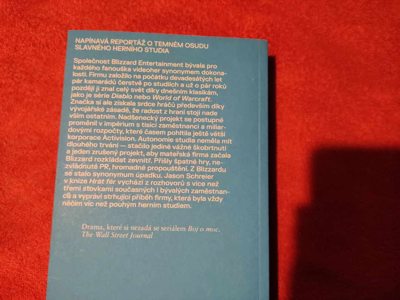 Společnost Blizzard Entertainment byla kdysi pro každého fanouška videoher synonymem dokonalosti. Firmu založilo pár kamarádů čerstvě po studiích na počátku devadesátých let a už o pár roků později ji znal celý svět díky dnešním klasikám, jako je série Diablo nebo World of Warcraft. Především si ale značka získala srdce hráčů kvůli designérskému přístupu, že radost z hraní stojí nade vším ostatním. Nadšenecký projekt se postupně proměnil v impérium s tisíci zaměstnanci a miliardovými rozpočty, které časem pohltila ještě větší korporace Activision. Autonomie studia neměla mít dlouhého trvání – stačilo jediné vážné škobrtnutí a zrušený projekt, aby mateřská firma začala Blizzard rozkládat zevnitř. Přišly špatné produkty, nezvládnuté PR, hromadné propouštění. Z Blizzardu se stalo synonymum úpadku. Jason Schreier v knize Hrát fér vychází z rozhovorů s více než třemi stovkami současných i bývalých zaměstnanců a vypráví strhující příběh firmy, která byla vždy něčím víc než pouhým herním studiem.