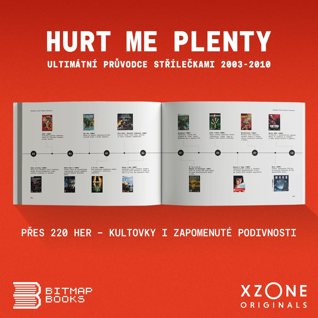 Kniha Hurt Me Plenty: Ultimátní průvodce střílečkami 2003–2010 začíná přesně tam, kde první díl I’m Too Young To Die skončil. Pokračuje od roku 2003, kdy se střílečky začaly čím dál tím více rozdělovat na velkorozpočtové blockbustery typu Call of Duty, Doom 3 nebo Half-Life 2 a na podivné, často už zapomenuté kousky, z nichž můžeme jmenovat třeba FireStarter, Cryostasis nebo handheldový Moon. Kniha obsahuje výběr přes 220 titulů napříč PC, herními konzolemi a handheldy.