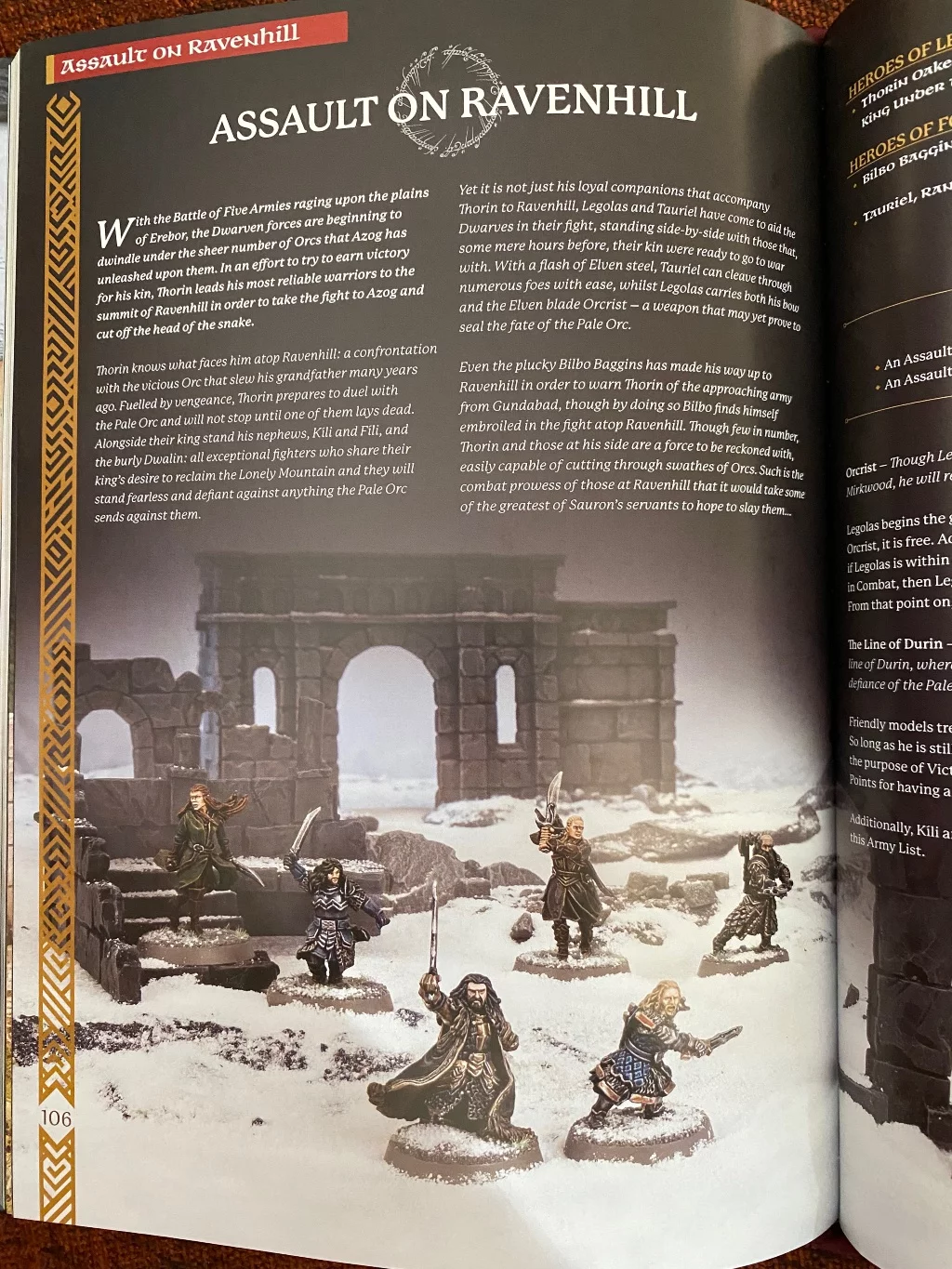Kniha obsahuje více než 120 profilů, 15 seznamů armád dobra, které představují Erebor, Mirkwood, Jezerní město a další, a sedm seznamů armád zla pro Gundabad, město skřetů, Dol Guldur a další temná místa.