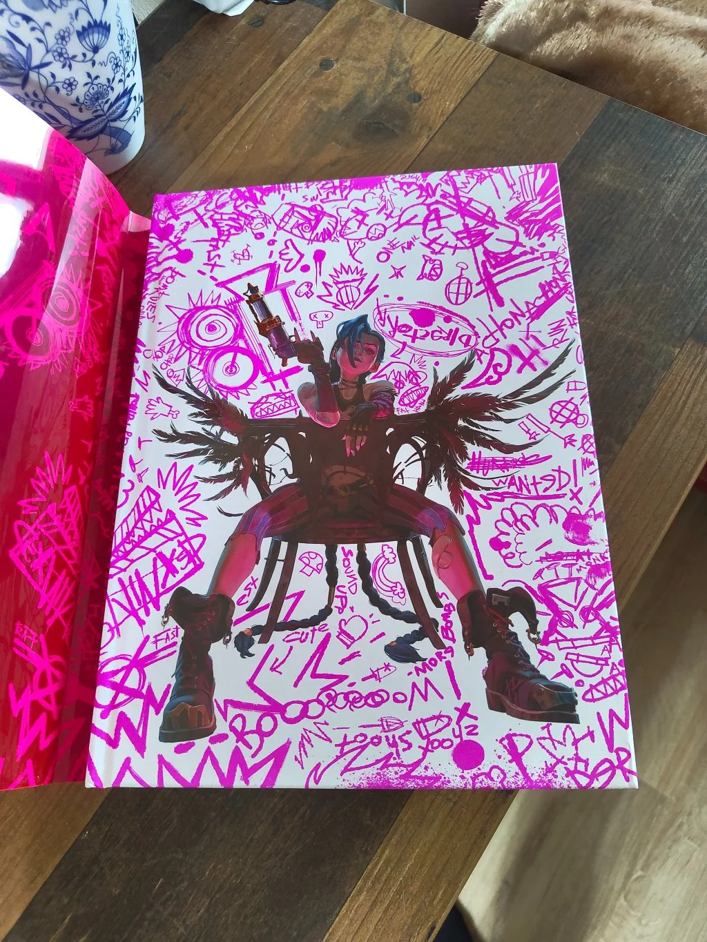 Tento ohromující svazek bude také obsahovat spoustu doplňků ze světa Arcane. Všechna vydání knihy budou obsahovat plakát Jinx, odnímatelnou mapu Piltoveru, plán světa, Vanderův dopis, rozkládací přílohy s obsahem z první a druhé sezóny a další. -