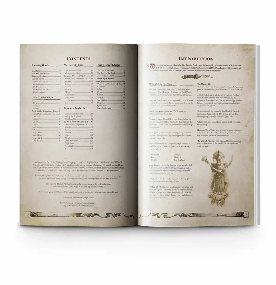 Každý army list obsahuje seznam složení Grand Army pro danou frakci, spolu s úvodem k frakci a úplným popisem každé z mnoha postav a jednotek, které obsahuje. Vedle toho je zde přehlídka nádherně namalovaných armád od talentovaných malířů světoznámého týmu 'Eavy Metal.Počet stran: 192