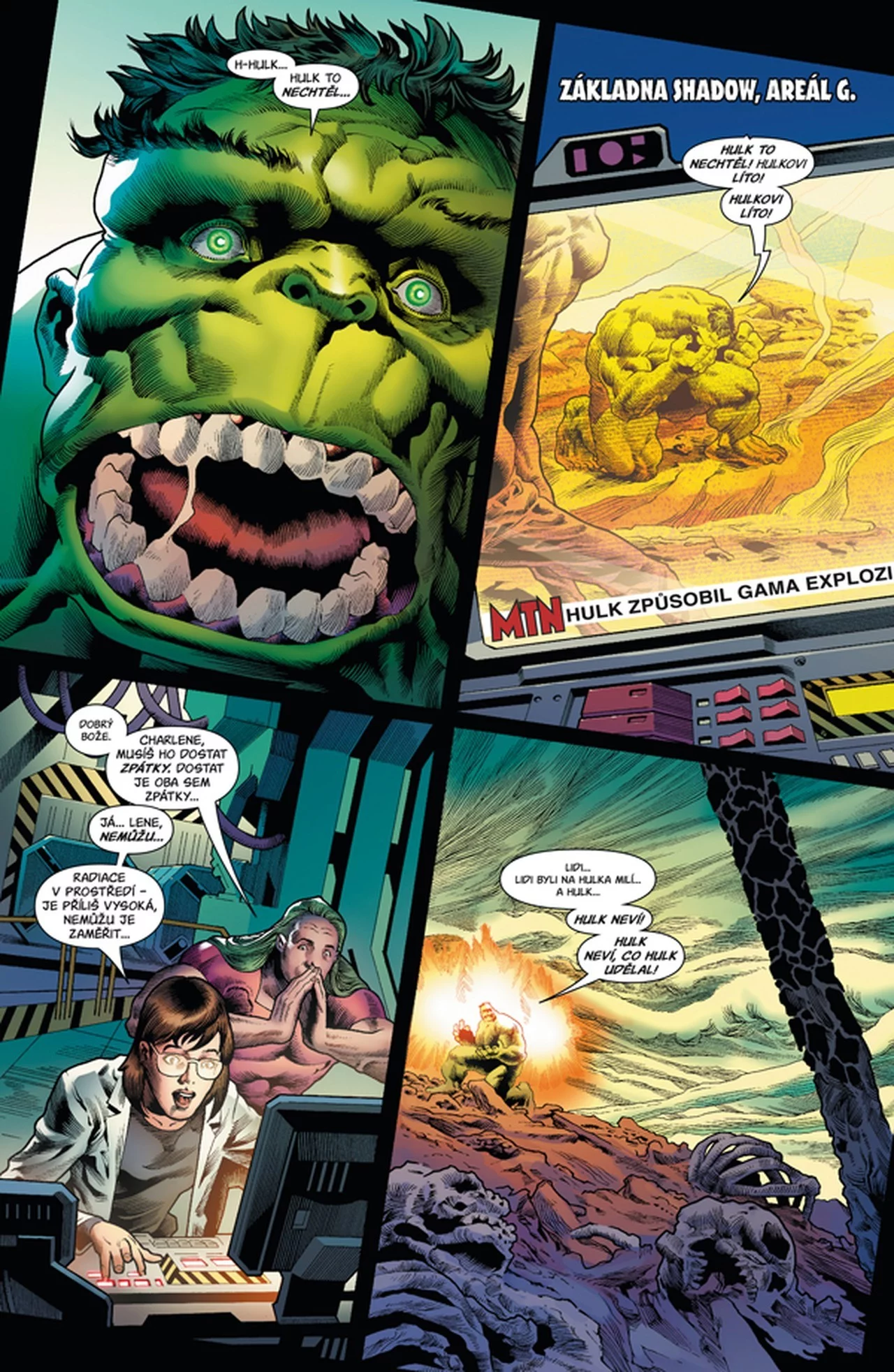 NÁSLEDUJTE LEADERA! Hulkův arcinepřítel se v rámci příprav na provedení svého hanebného, dlouho připravovaného plánu zaměřil na infiltraci okruhu přátel zeleného obra. Dokáže ale Leader dotlačit nesmrtelného Hulka až do bodu zlomu? Když Bruce Banner poprvé přišel na základnu Shadow, byl rozřezán na kusy a uložen v lahvích... ale byl až druhým pokusným subjektem. Ten první se právě osvobodil! A kromě toho do mentální sféry Bruce Bannera před časem pronikla vnější síla. Ďábelský Hulk říká, že je to Zelená jizva. Zelená jizva tvrdí, že je to Ďábelský Hulk. Mýlit se mohou oba! Ale nyní se hluboko v Bannerově mysli cosi natahuje zelenými dveřmi – a chce to Bannerovi ošklivě ublížit. A to si Ďábelský Hulk bere osobně.Počet stran: 128