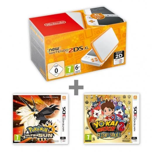Konzole New Nintendo 2DS XL White & Orange + Pokémon US + Yo-Kai Watch 2