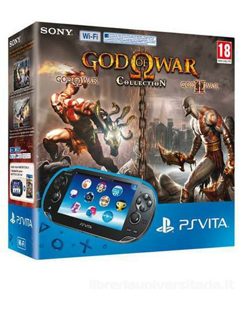 Balení obsahuje konzolu Playstation Vita (Wifi) a hru God of War Collection