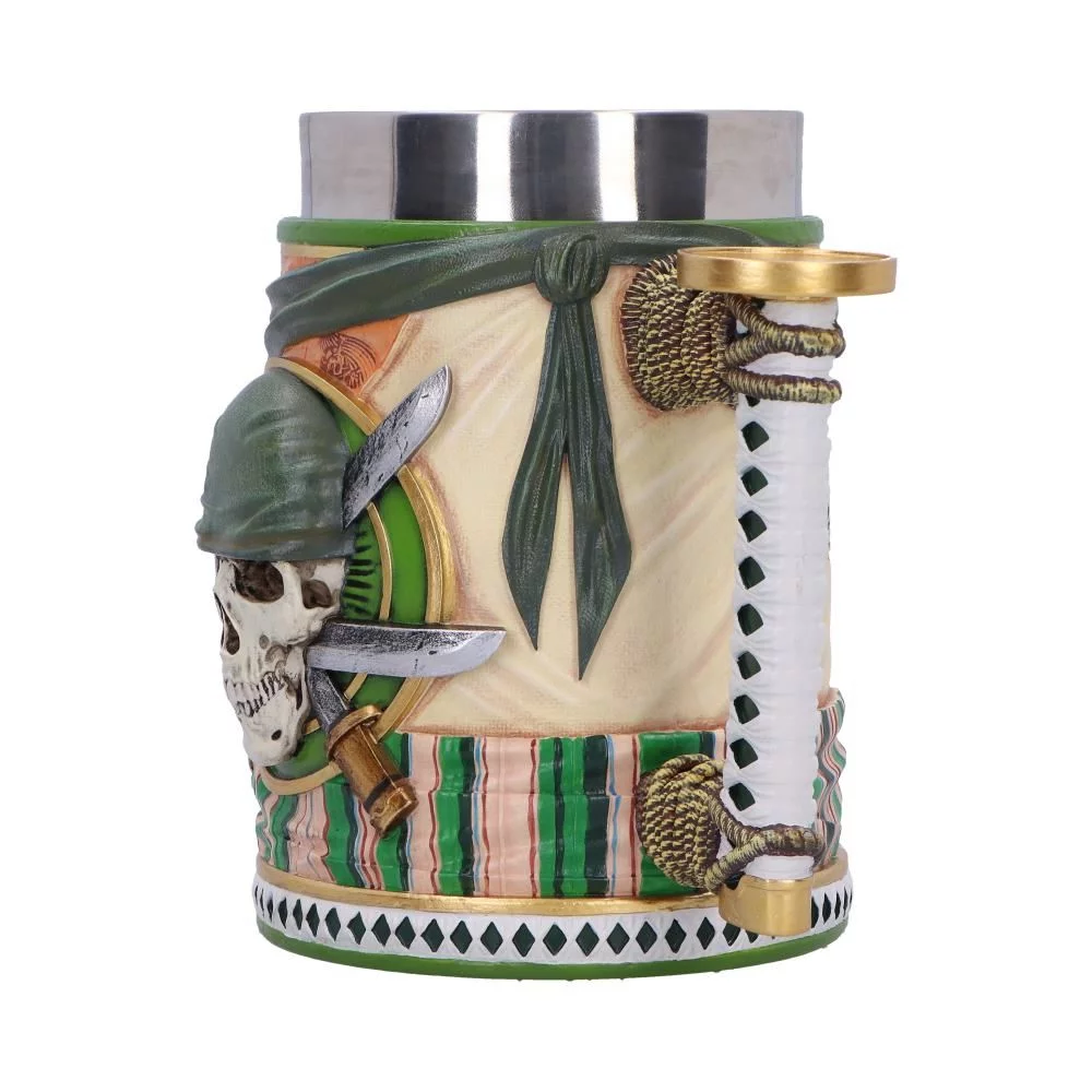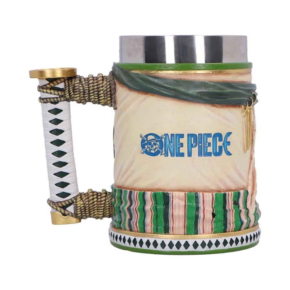 Masivní korbel inspirovaný Roronoou Zorem z One Piece, který na první pohled působí jako trofej z pirátské výpravy. Detailní lebka, meče a omotaná rukojeť evokují Zorův nekompromisní styl a cestu šermíře, který nikdy necouvá.
