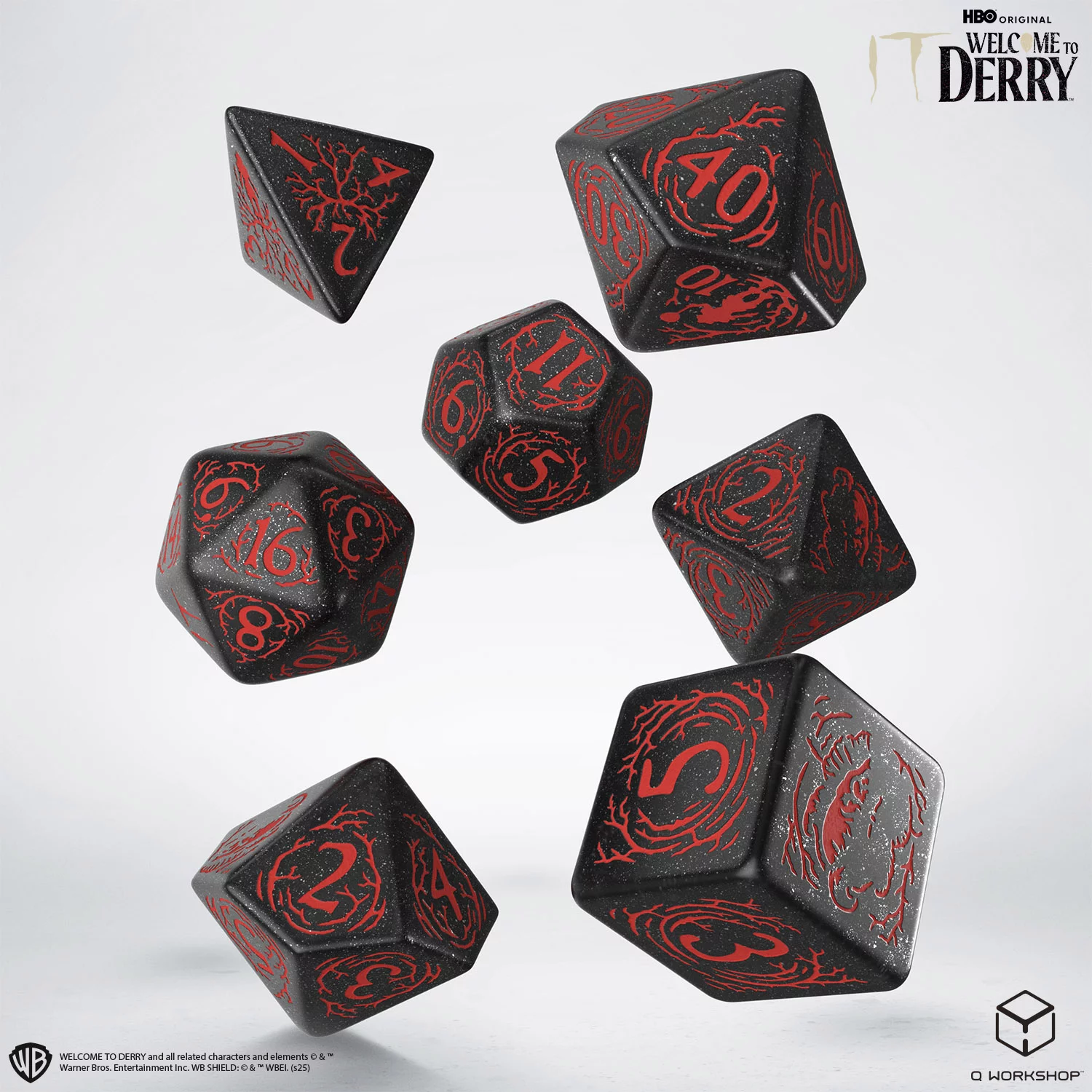 Vstupte do děsivého města Derry s kostkami IT – Welcome to Derry. Každá kostka je zdobena temnými symboly inspirovanými hororem Stephena Kinga a HBO seriálem, včetně klaunského úsměvu či rudého balónku.