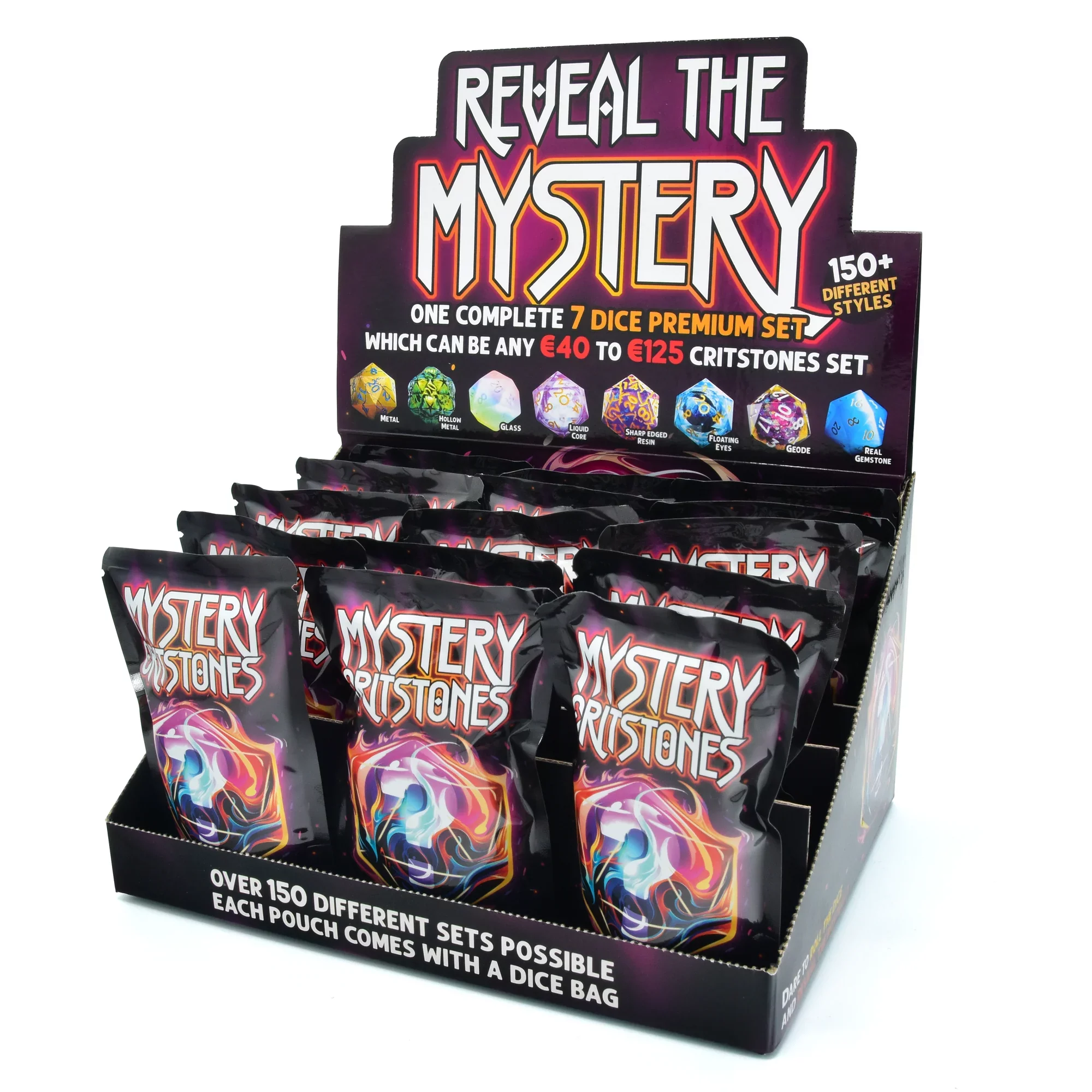 Mystery CritStones je sada pro všechny, kdo milují napětí, překvapení a ten okamžik, kdy padne osudový hod. Každý balíček ukrývá kompletní prémiový set 7 kostek – můžeš objevit kovové, skleněné, tekuté, duté i krystalové poklady.