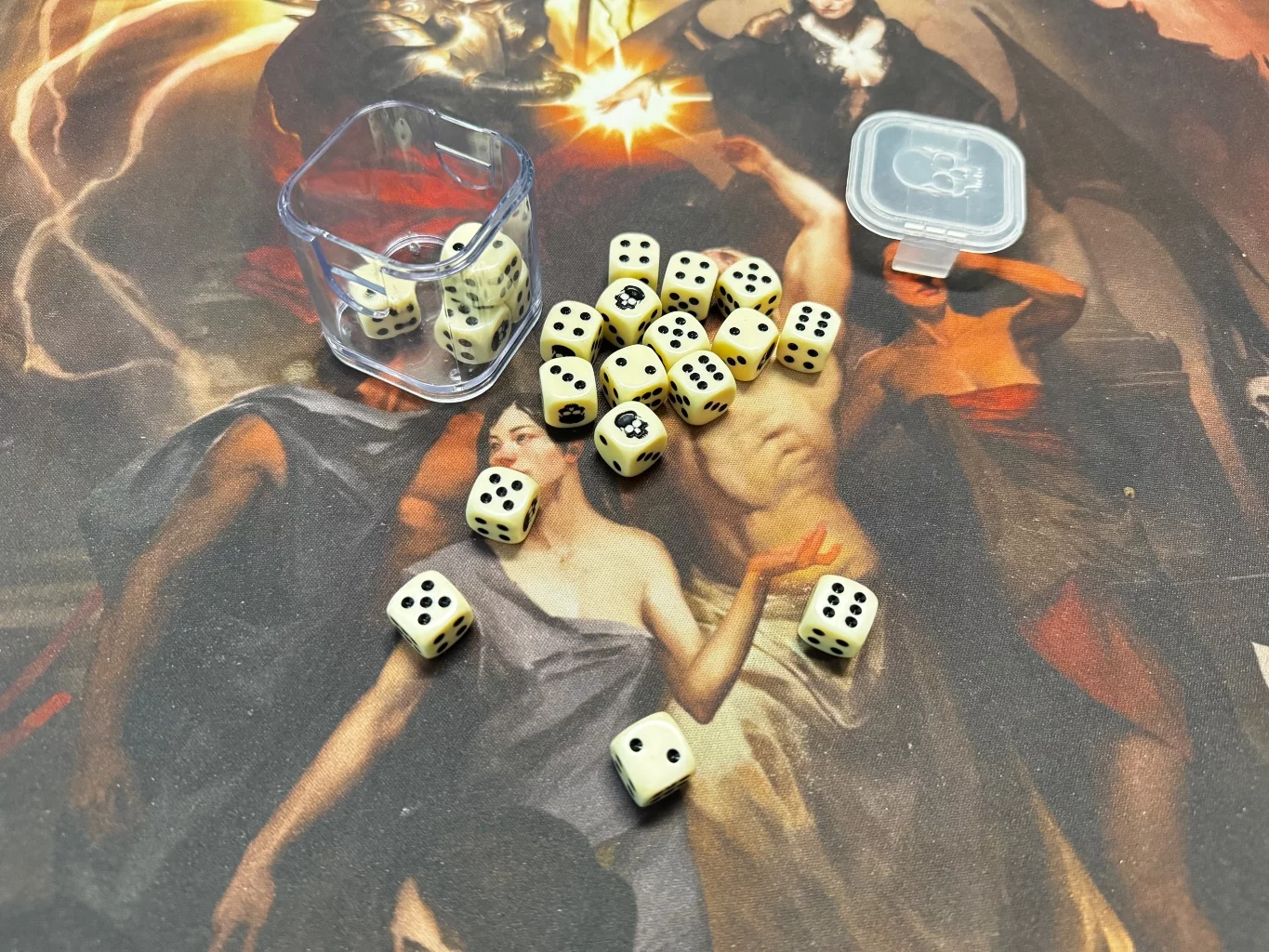 Jednoduchý, ale přesně takový, jaký to má být. Kostky jsou čitelné, dobře padnou do ruky a ten krémový styl s černými čísly vypadá fakt elegantně. Super doplněk ke každé armádě.
