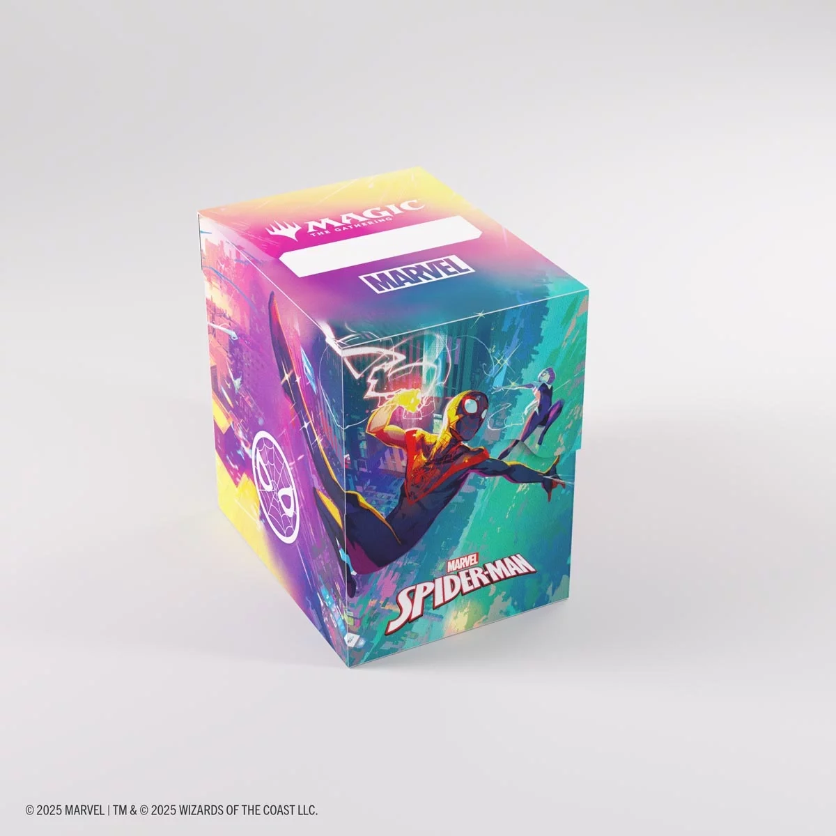 Stylová krabička Gamegenic – Magic: The Gathering Soft Crate 80+ Spider-Man/Spider-Gwen kombinuje praktickou konstrukci s poutavým designem inspirovaným multivesmírem Spider-Verse. Oficiálně licencovaný motiv zachycuje akční duo Spider-Mana a Spider-Gwen v neonových barvách, které dodávají vaší sbírce výrazný charakter.