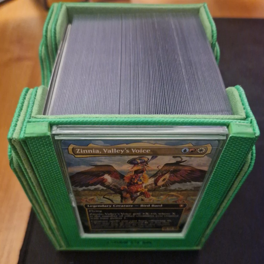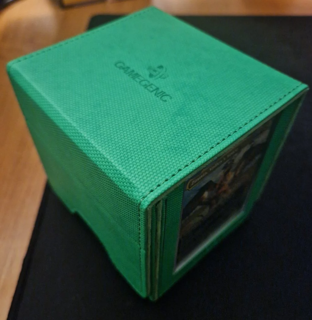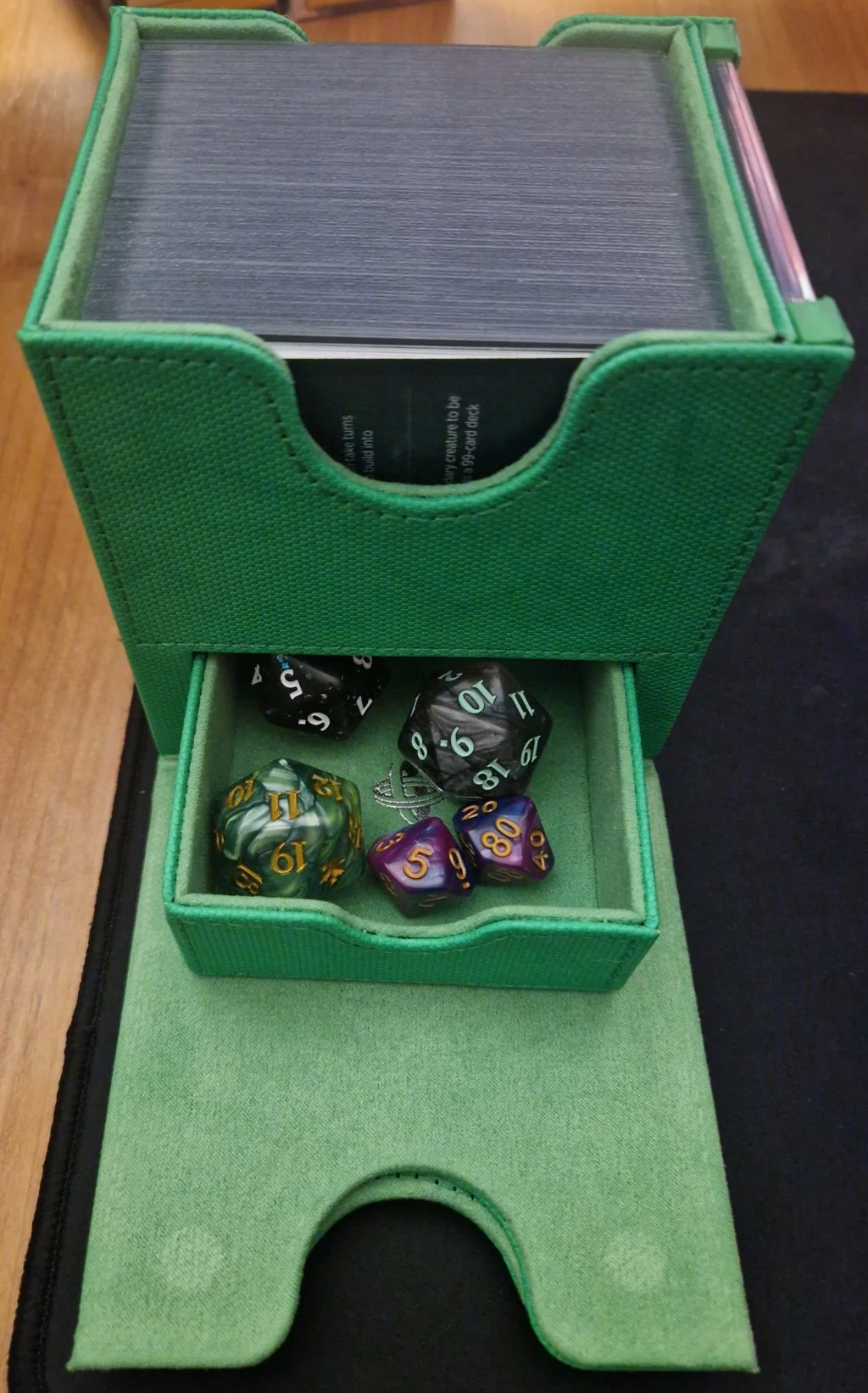 Fajn deckbox, single sleeved commander deck aj s tokenmi sa zmestí aj s rezervou. Super zásuvka na príslušenstvo/kocky.