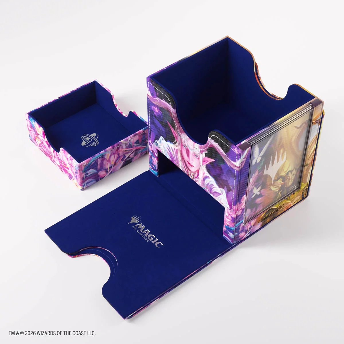 Stylová krabička na karty, která ochrání váš balíček a zároveň zaujme detailním fantasy motivem z Lorwyn Eclipsed. Ideální volba pro hráče, kteří chtějí mít své karty v bezpečí a s výrazným designem.Rozměry: 110 x 104 x 102 mm