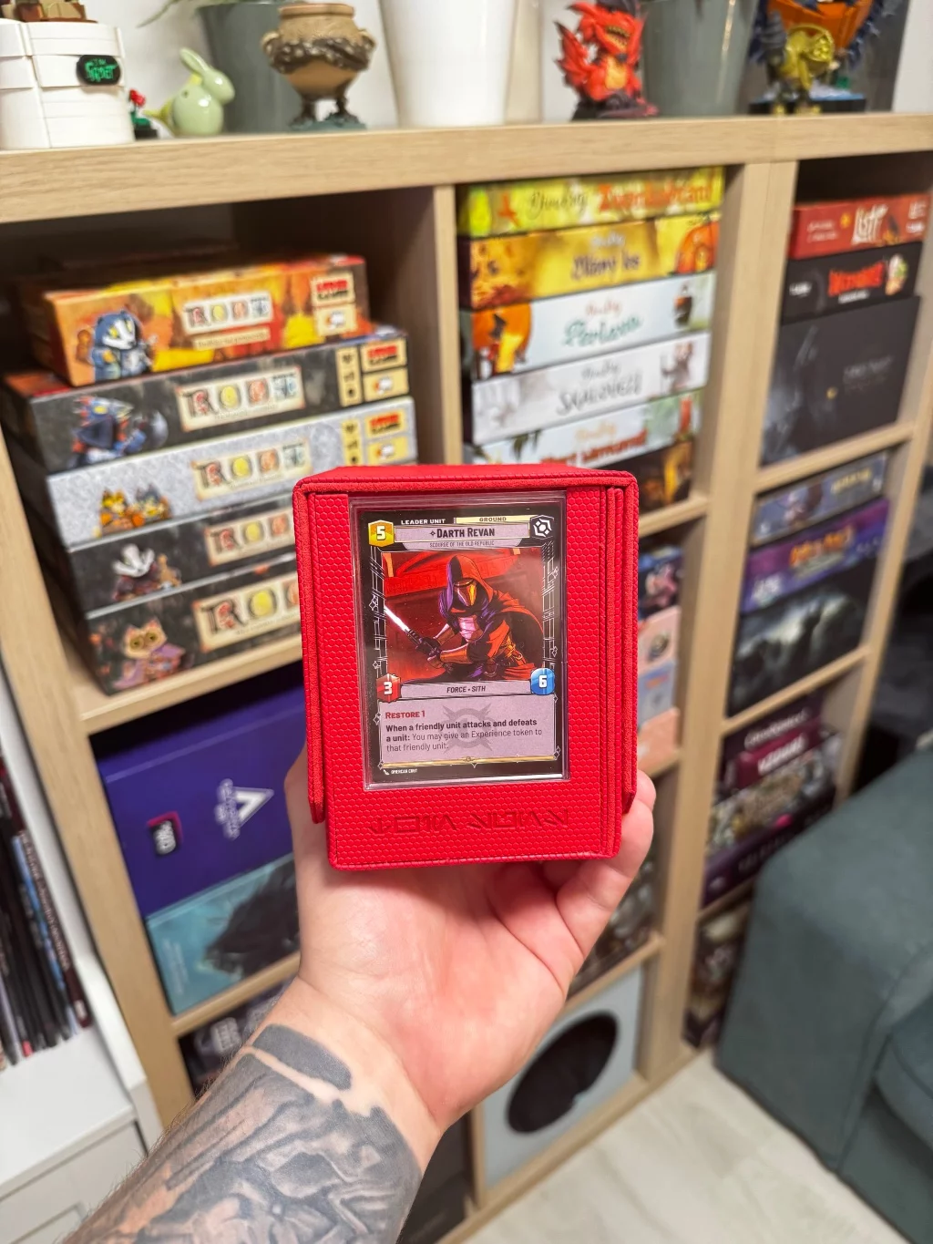 Parádní krabička na deck. Praktická, pevná a navíc s krásným designem Star Wars Unlimited. Twin Suns edice od Gamegenic přesně ví, co hráč potřebuje. Navíc k tomu všemu červená báze v hyperspace alt artu, prostě bomba!