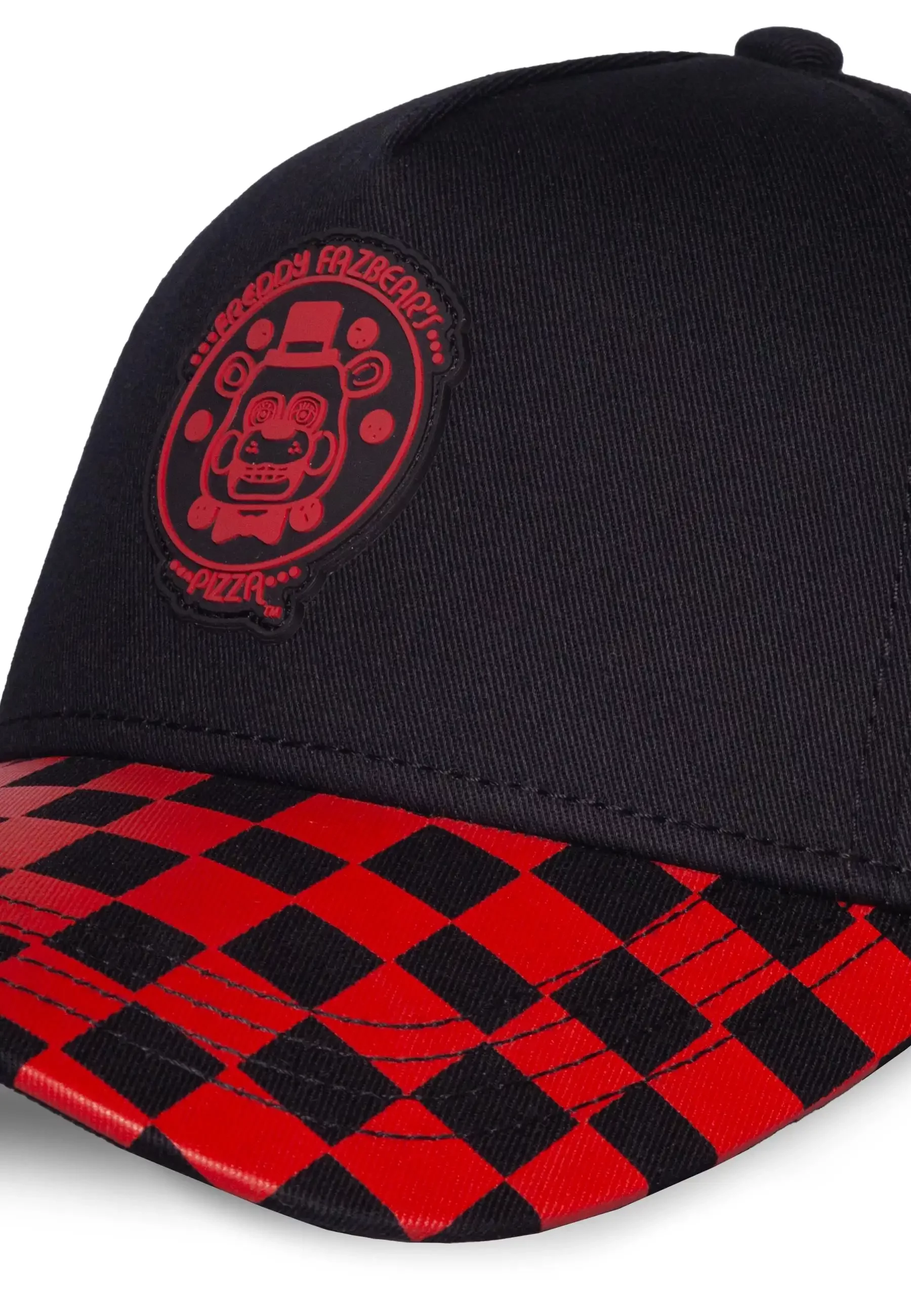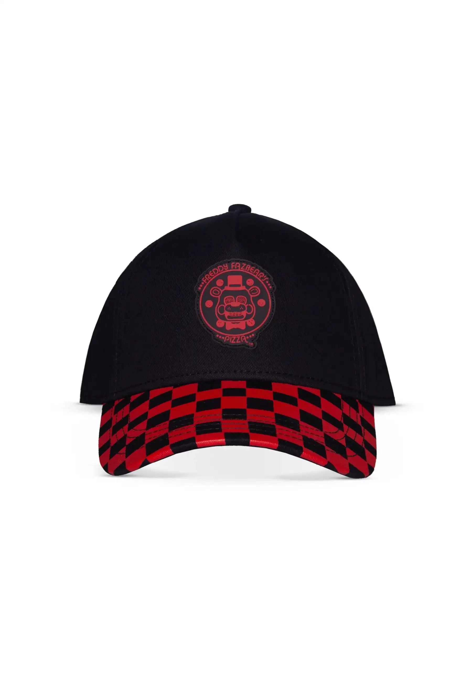 Stylová černá kšiltovka inspirovaná hororovou sérií Five Nights At Freddy's s výrazným červeným logem Freddy Fazbear’s Pizza na přední straně a kostkovaným vzorem na kšiltu. Díky nastavitelnému zapínání vzadu padne většině velikostí. Ideální doplněk pro fanoušky, kteří chtějí ukázat svou lásku k FNAF i mimo herní obrazovku.Velikost: nastavitelná