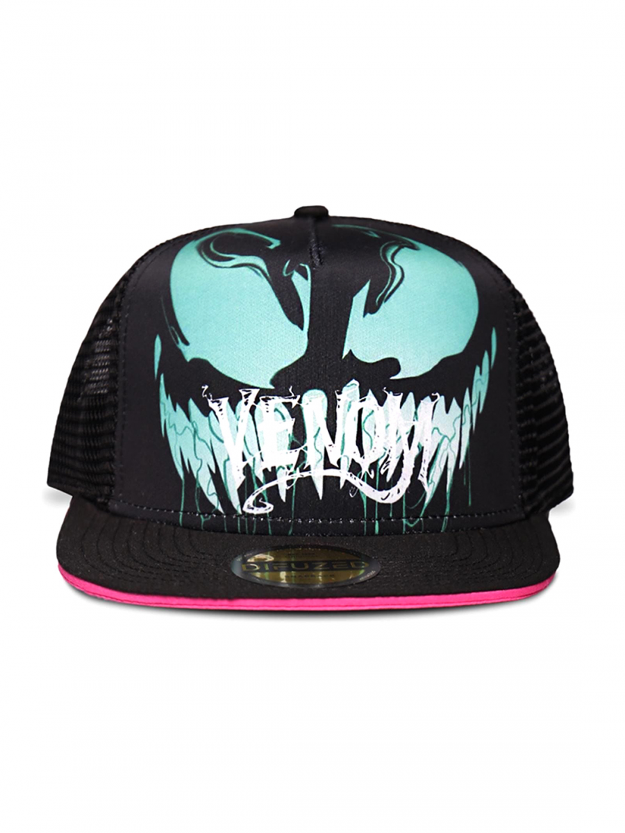 Kšiltovka pro fanoušky marveláckého antihrdiny Venoma. Černou truckerku zdobí Venomův zubatý úsměv a výrazné barvy.