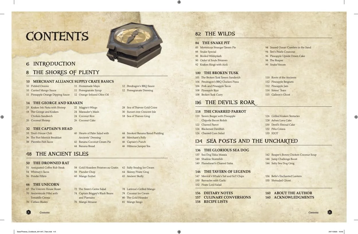 Popkulturní kuchařka s jídly a nápoji inspirovanými nejprodávanější multiplayerovou pirátskou videohrou Sea of Thieves. Tato kuchařka je plná lahodných rybích, masových, vegetariánských a veganských pokrmů, které jistě inspirují mořské kuchaře všech úrovní dovedností, a je tak dokonalým kulinářským společníkem pro vaše drancující dobrodružství. Nechte Larinnu, vůdkyni krys z Bilge Rats, být vaším průvodcem na kulinářském dobrodružství v Sea of Thieves. Kuchařka obsahuje více než 80 lahodných receptů, ze kterých můžete připravit hostinu pro vaše spolubojovníky a doplnit energii pro vaši posádku na cestě za novým dobrodružstvím.
