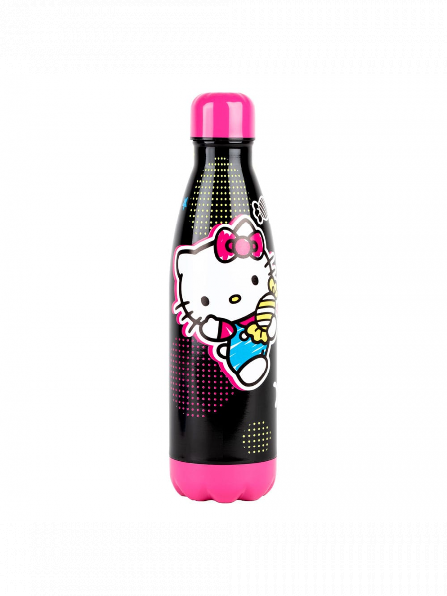 Černá láhev s hravým motivem Hello Kitty a sladkými detaily zaujme na první pohled. Ideální do školy, práce i na cesty, pro každého, kdo chce mít pití po ruce a zároveň dát najevo lásku k ikonickému stylu Sanrio.Objem: 500 ml