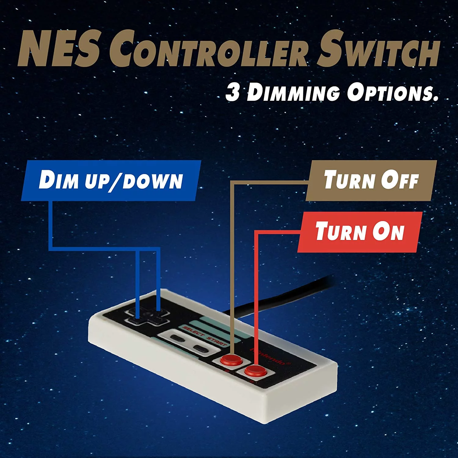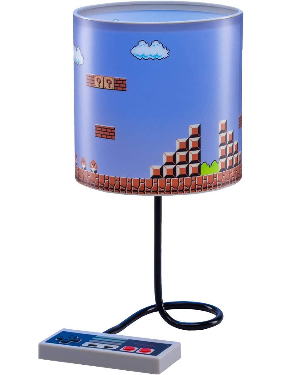 Krásná a jedinečná lampa pro všechny fanoušky retro her a Nintenda. Základna s vypínačem a přepínačem módu je ve tvaru legendárního NES ovladače, zatímco stínítko samotné LED lampy je zdobeno ikonickým levelem hry Super Mario Bros. z konzole Nintendo Entertainment System.