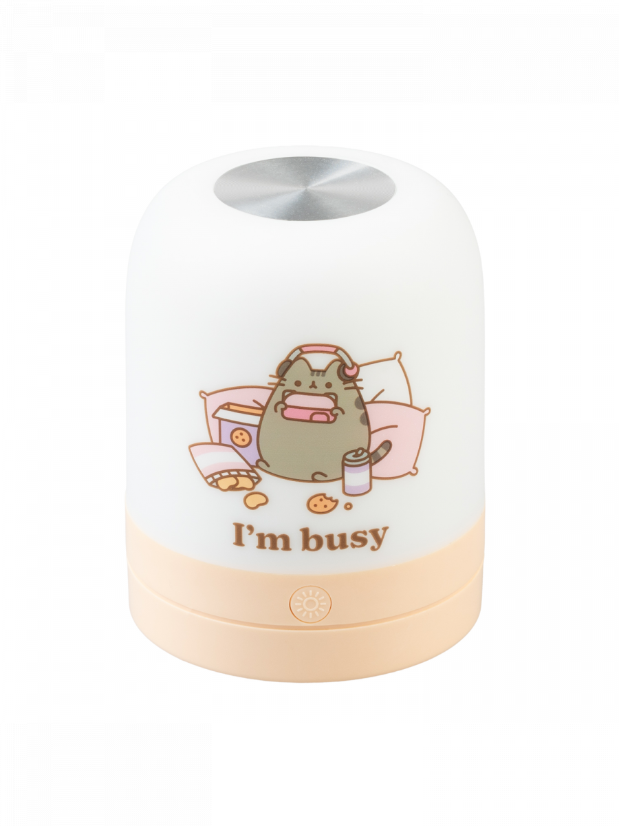Lampička Pusheen – I’m busy zaujme roztomilým motivem kočičky v pohodovém režimu a jemným ambientním světlem, které si snadno přizpůsobíte podle nálady. Nabízí tři barevné teploty, plynule nastavitelný jas a ovládání dotykovým tlačítkem nahoře.
