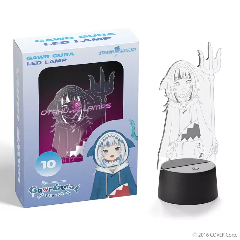 Krásná oficiálně licencovaná lampička s laserovým gravírováním s námětem VTuberů od hololive může sloužit jako příjemné noční světlo či jen jako interiérová dekorace. K lampičce je dodáván ovladač, který umožňuje měnit LED diody na kteroukoli z 16 dostupných RGB barev, stejně jako režimy blikání, stroboskopu, blednutí a plynulého svícení.
