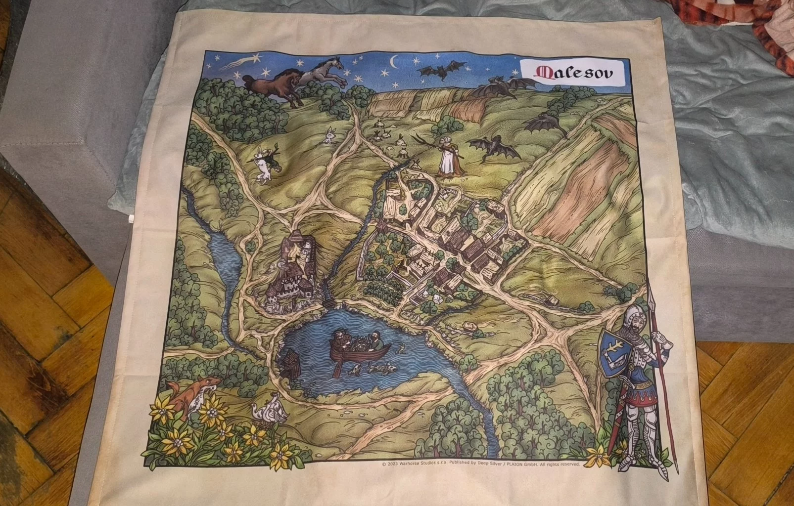 Objevte Malešov jako nikdy předtím. Tento nádherný látkový plakát přináší ručně ilustrovanou mapu z Kingdom Come: Deliverance II, plnou detailů, které ocení každý milovník středověké atmosféry.