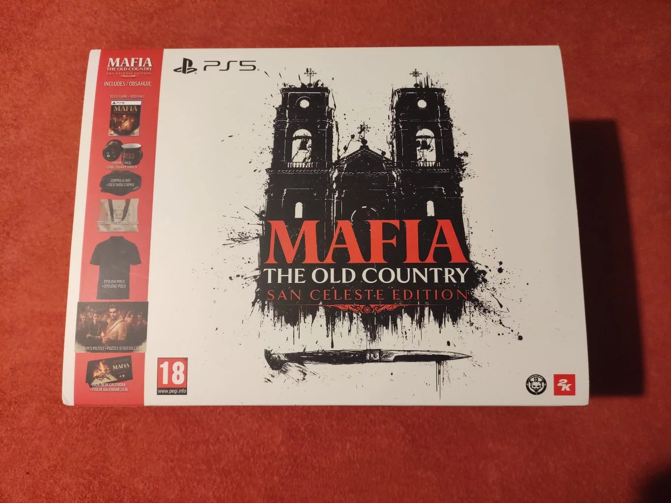 Uvnitř najdete stylový smaltovaný hrnek, sicilskou čepici Coppola s mosazným odznakem, látkovou tašku s nápisem Family Takes Sacrifice a elegantní černé polo. Sběratelský set doplňuje kalendář s atmosférickými motivy a puzzle s ikonickým uměním hry.