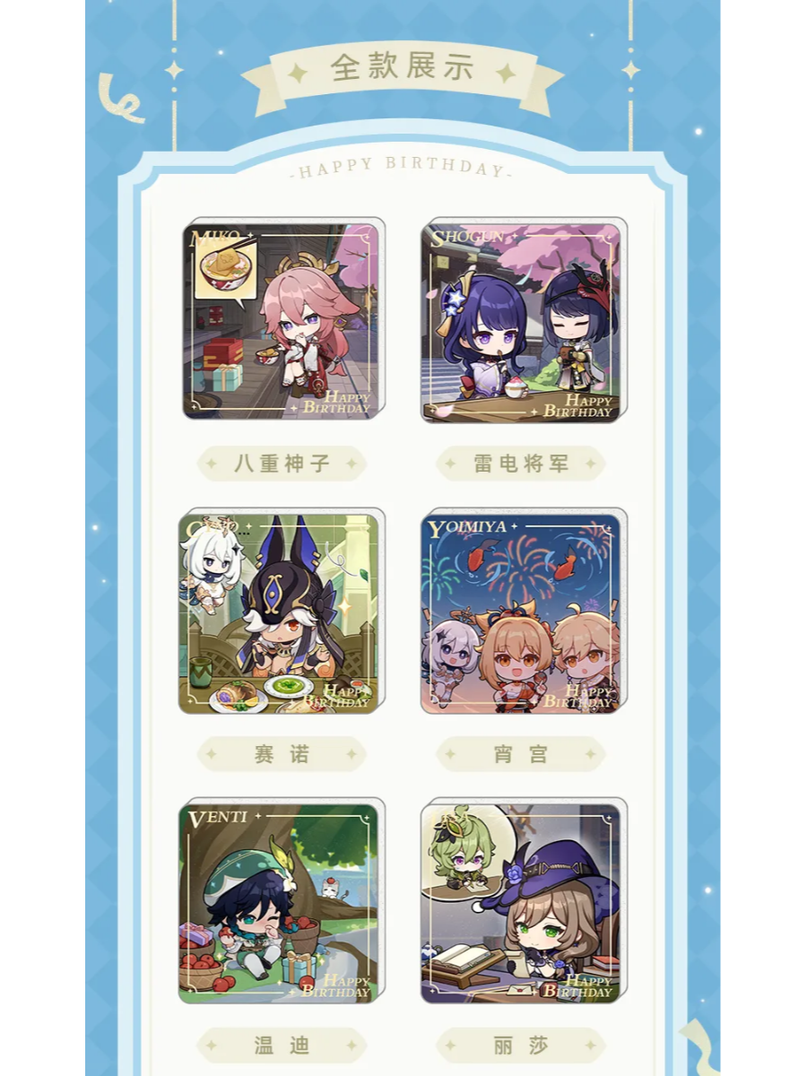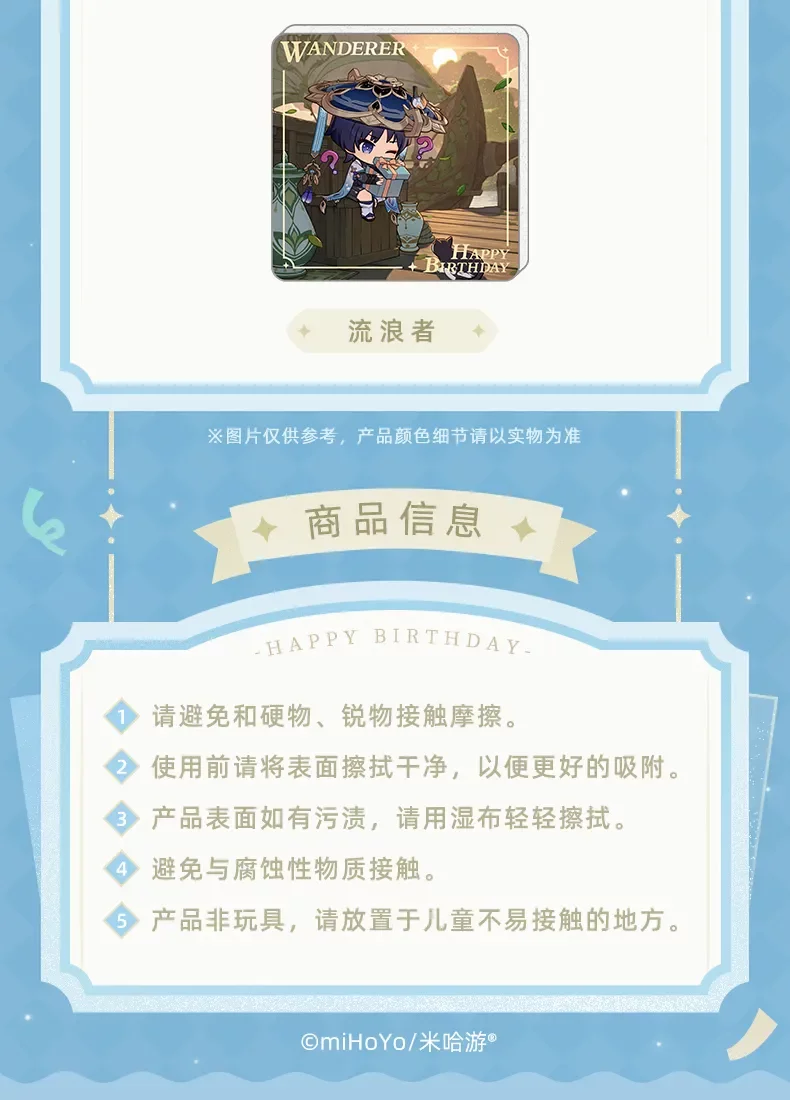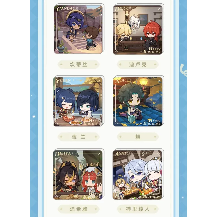 Rozkošný magnet s chibi postavičkami z Genshin Impact, který Vám připomene oblíbené hrdiny při každém pohledu. Každý motiv zachycuje jedinečnou atmosféru narozenin jednotlivých postav a jejich typický styl.