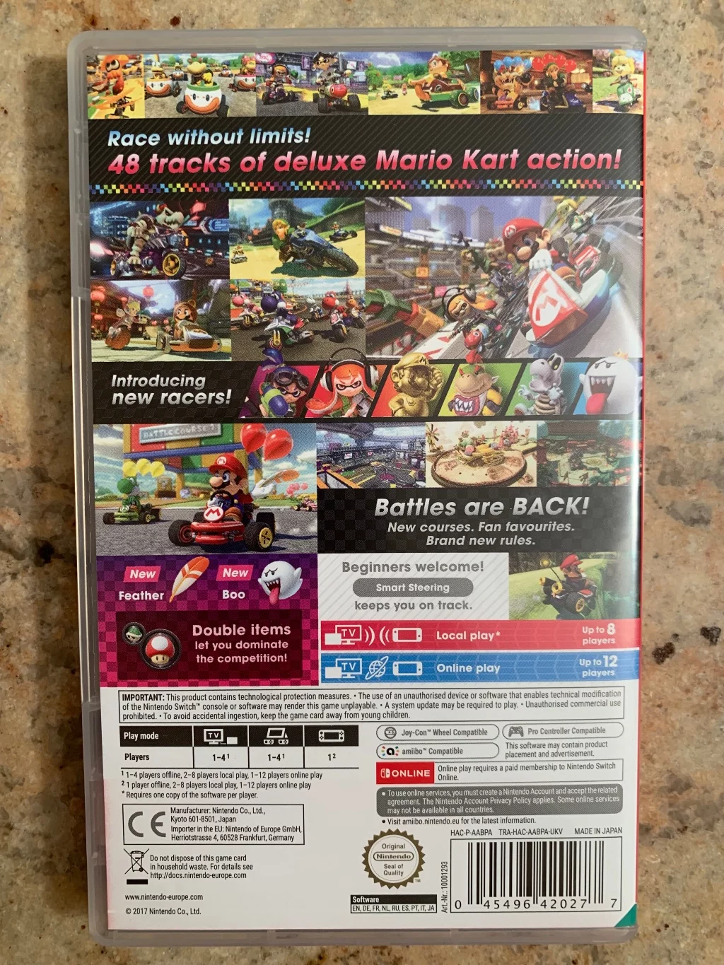 No a co takhle otestovat své schopnosti a vyzvat hráče z celého světa kdykoli a kdekoliv v handheld módu? Závodit je taktéž možné s využitím precizního pohybového ovládání, které si mohou užít hráči všech dovednostních tříd jednoduchým zapojením ovladače Joy-Con do příslušenství Joy-Con Wheel (v setech po dvou kusech prodáváno samostatně). S tolika způsoby hraní, množstvím tratí a módů se jedná o ten doposud největší Mario Kart zážitek!