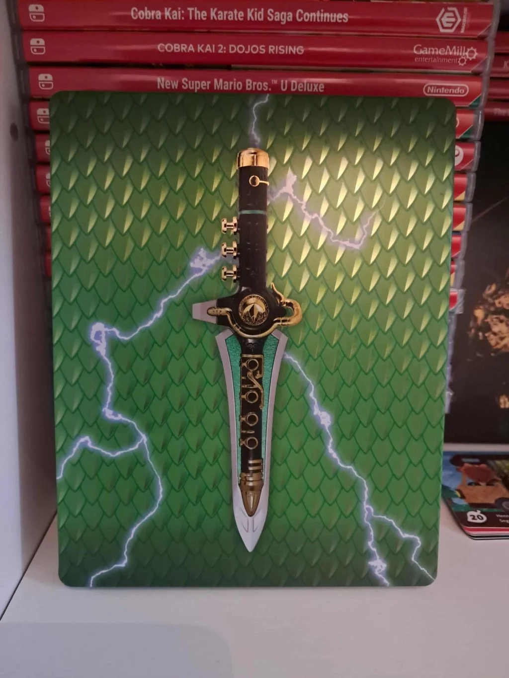 Pěkná retro sada, kde pro mě byl hlavním tahákem steelbook s designem "silo-dýky" Zeleného strážce:)) Steelbook vypadá krásně, pod světlem se i pěkně leskne, ale jeho velikost neodpovídá rozměru Switch obalů a ani v sobě nemá slot, do kterého se dá vložit herní cartridge. Takže skutečně jen věc na vystavení, bez praktického využití. Vejdou se tam leda přiložené kartičky a lentikulární pohlednice.