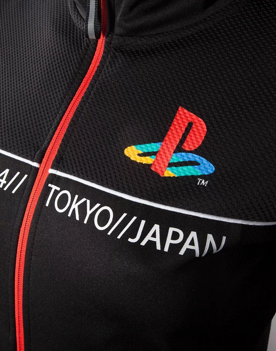 Dámská mikina ve stylu světoznámé konzole PlayStation s japonskými nápisy je vyrobena z kvalitního materiálu, nabídne zip, kapsy a kapuci.