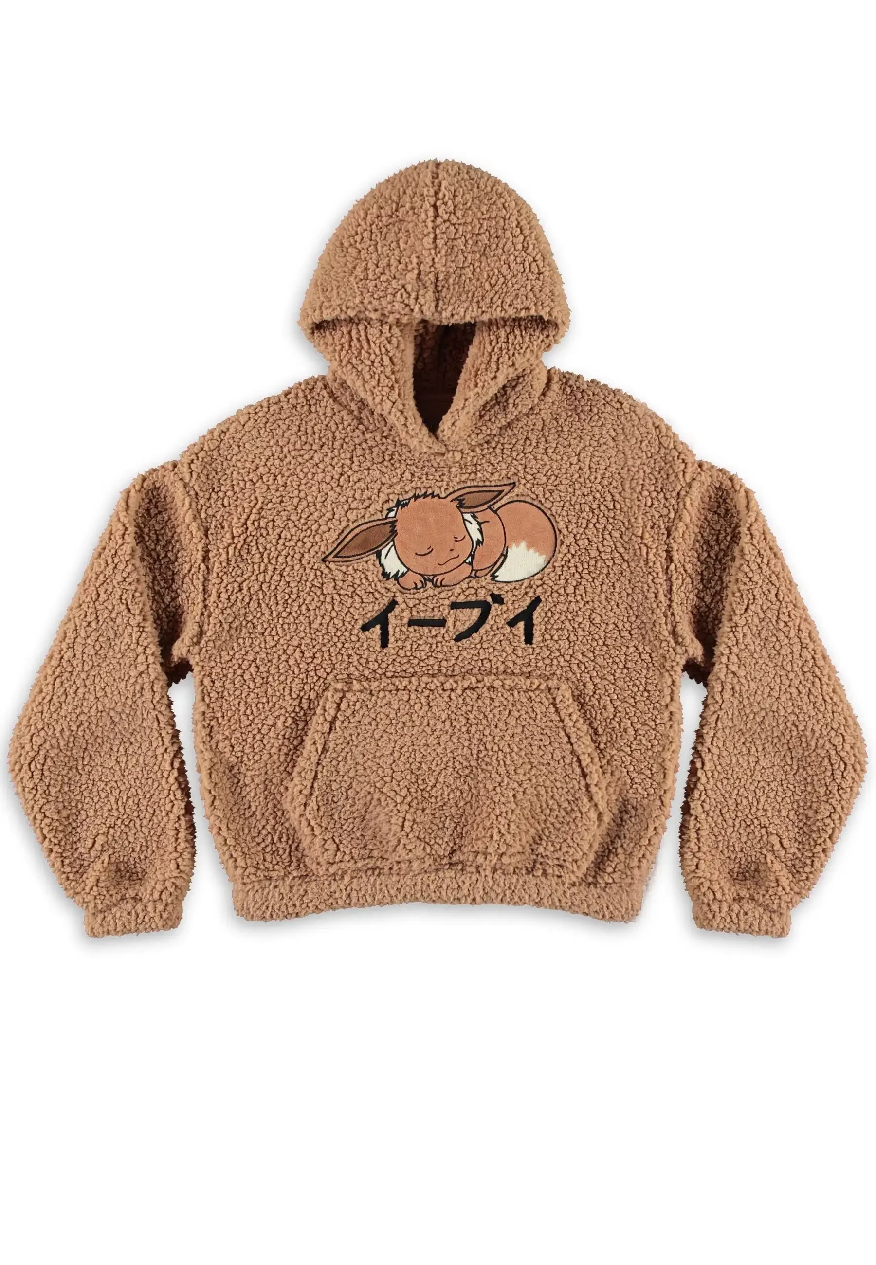 Mikina Pokémon - Eevee Teddy z nadýchaného teddy materiálu je ideální pro pohodové dny doma i venku. Na přední straně zdobí spící Eevee s japonským nápisem, který potěší každého fanouška Pokémonů.