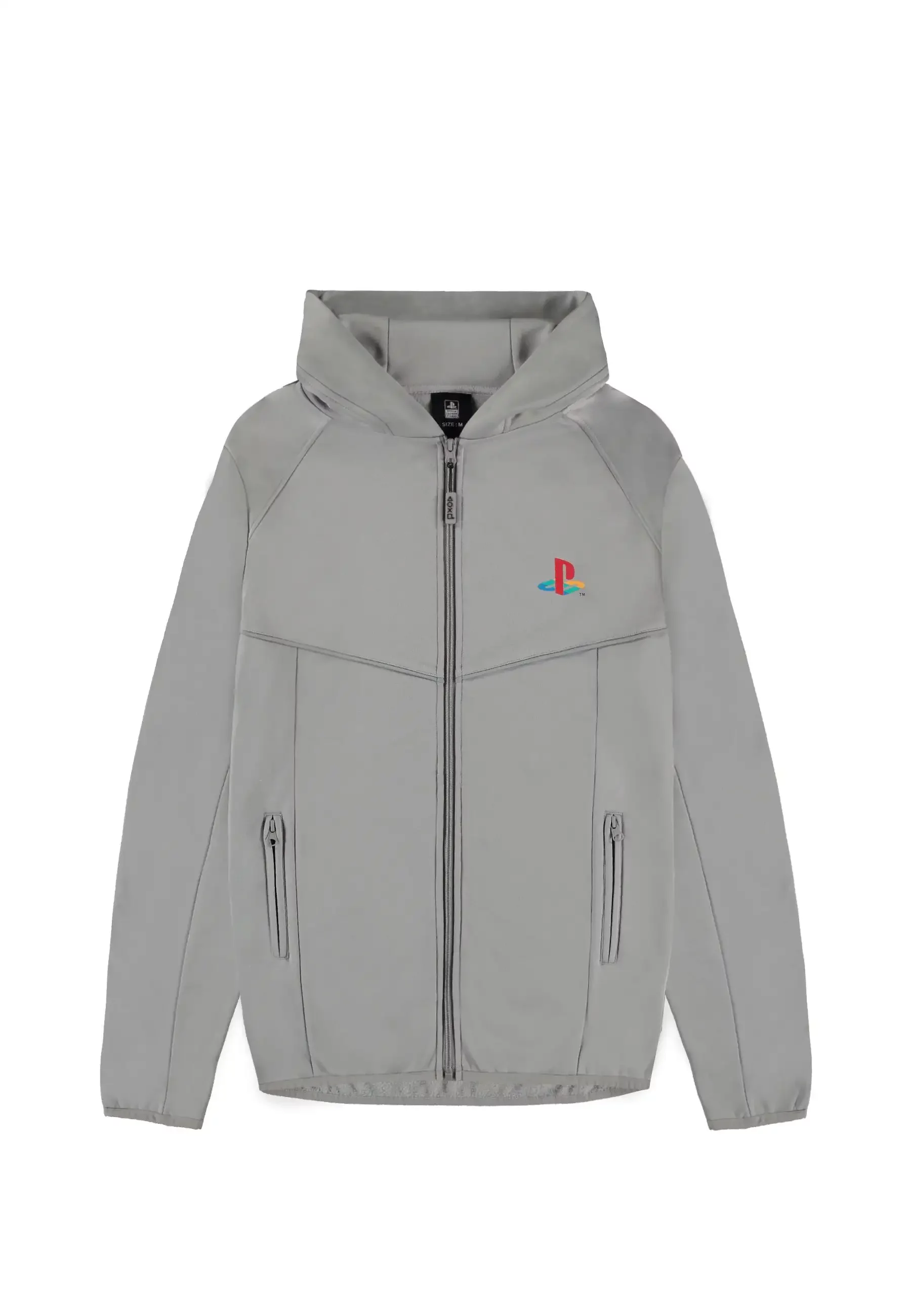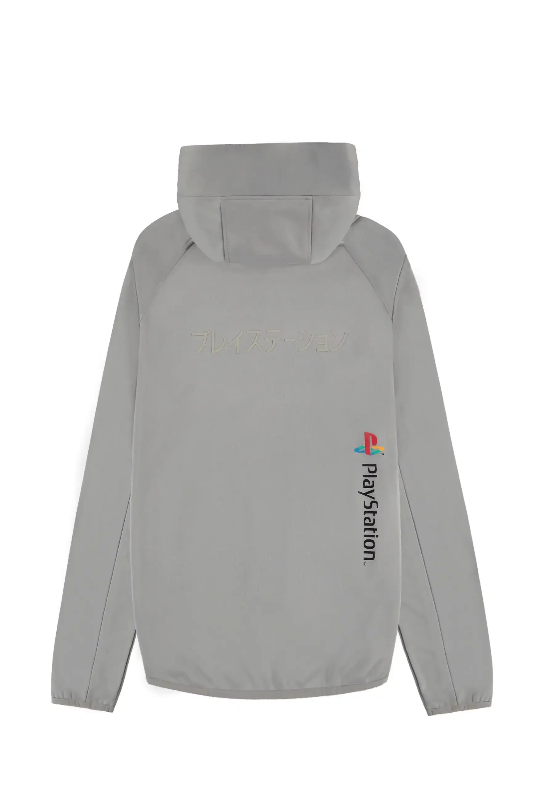 Mikina PlayStation - Logo Technical Hoodie v šedém provedení nabízí decentní design s logem konzole na hrudi i zádech, doplněný japonským nápisem „PlayStation“. Lehký technický materiál a zip z ní dělají ideální volbu pro každodenní nošení i herní maratony.
