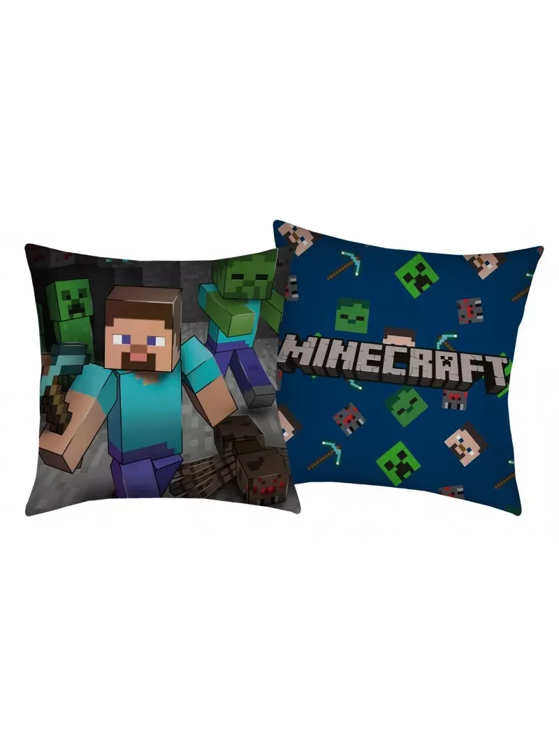 Krásný polštář s logem legendární hry Minecraft a krásným obrázkem Stevem prchajícím před monstry. Ideální pro odpočinek po celodenním těžbě diamantů.