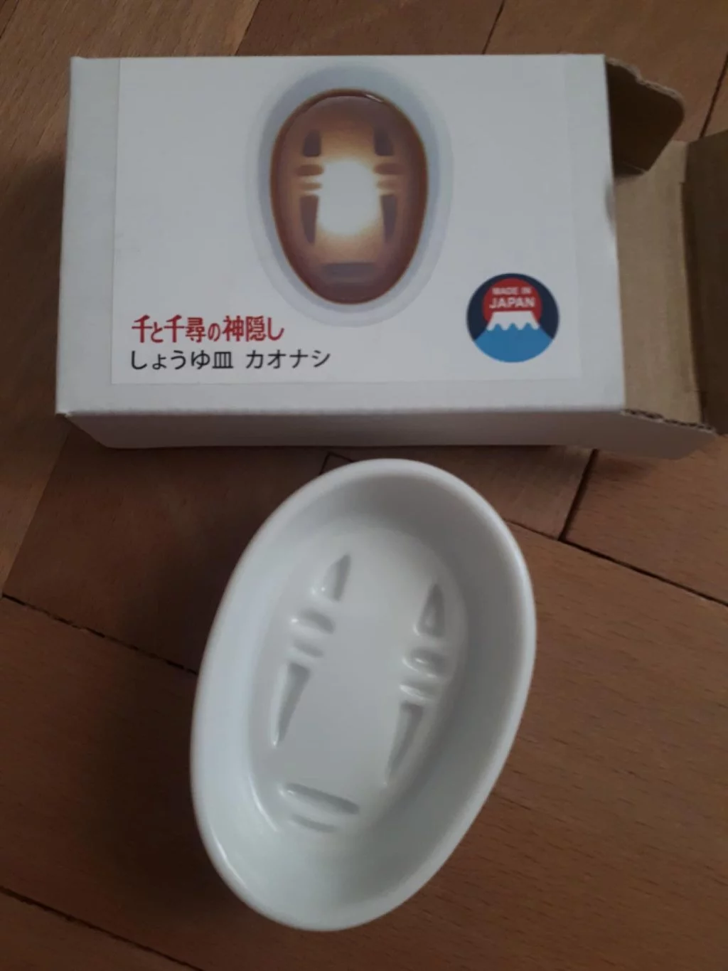 Mistička na sójovku má vtipné provedení, které jsem viděla i u jiných japonských misek na sójovou omáčku - po nalití trochy sójovky se díky nerovnému dnu objeví vystínovaný obrázek. Kaonaši z Cesty do fantazie v téhle misce je perfektní. Ráda bych pochválila i kvalitní porcelán. Sójovky se tam vejde tak akorát, okraj je nízký, takže se suši dobře namáčí. Je to skvělý doplněk do kuchyně a zejména pro milovníky suši a studia Ghibli nezbytnost.