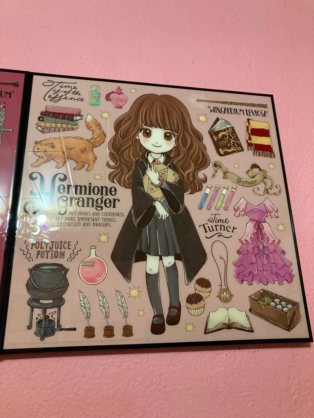 Parádně zpracovaný obraz s motivem, který ocení především fanoušci knižní a filmové série o Harry Potterovi. Najdete na něm Hermionu a další známé předměty z čarodějnické ságy zpracované v roztomilém Chibi stylu. Obraz je vytvořen ze speciálního materiálu (Resin/MDF), díky kterému vyniknou syté barvy a ostré linie.