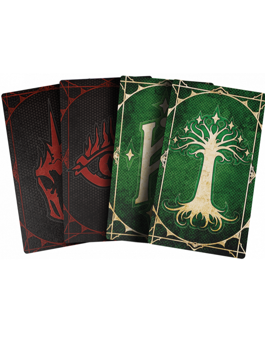 Prémiové tarotové obaly na karty inspirované pro deskovou hru Pán prstenů: Konfrontace přinášejí tematickou ochranu pro každou partii. Čtyři jedinečné motivy dodají vašemu balíčku styl i odolnost.OBSAH EDICE
