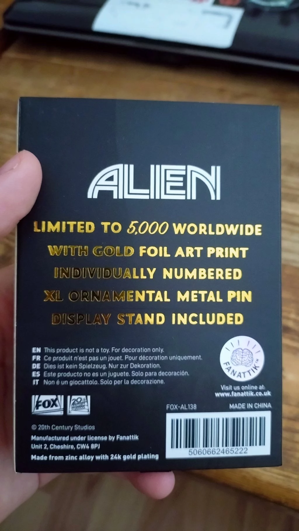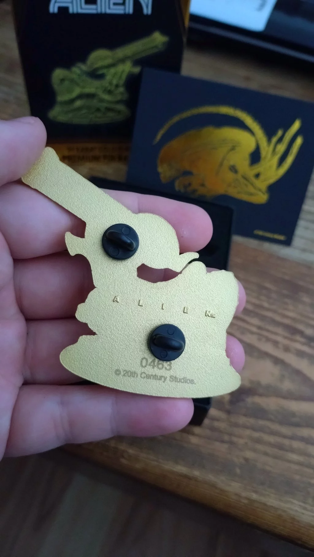 Limitovaný pozlacený odznak inspirovaný thrillerovou legendou Alien (Vetřelec). Odznaky jsou limitované na 5000 ks celosvětově. Zabaleno ve sběratelském boxu spolu se stojánkem a exkluzivní kartičkou se zlatým tiskem.Velikost: 9 cm