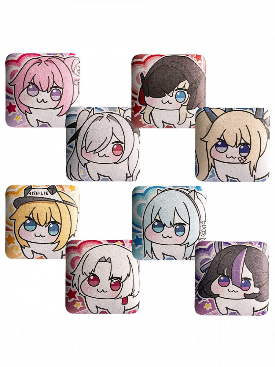 Roztomilá Doro v celé své rozmanité podobě. Tyto odznaky přinášejí hravý styl, výrazné barvy a ikonické výrazy, které fanoušci Nikke okamžitě poznají.