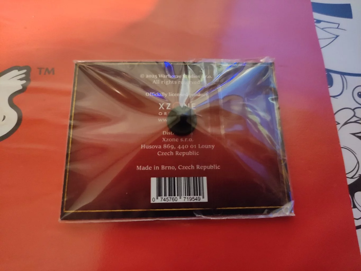 Odznak je vyroben, malován a kompletován v České republice s oficiální licencí Warhorse Studios.Výška: cca 3 cm