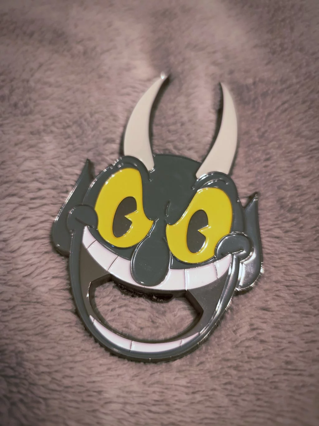Tento výjimečně vypadající otvírák na láhve s motivem z Cuphead je vyroben z kvalitního materiálu a je opatřen magnetem pro umístění na ledničku.