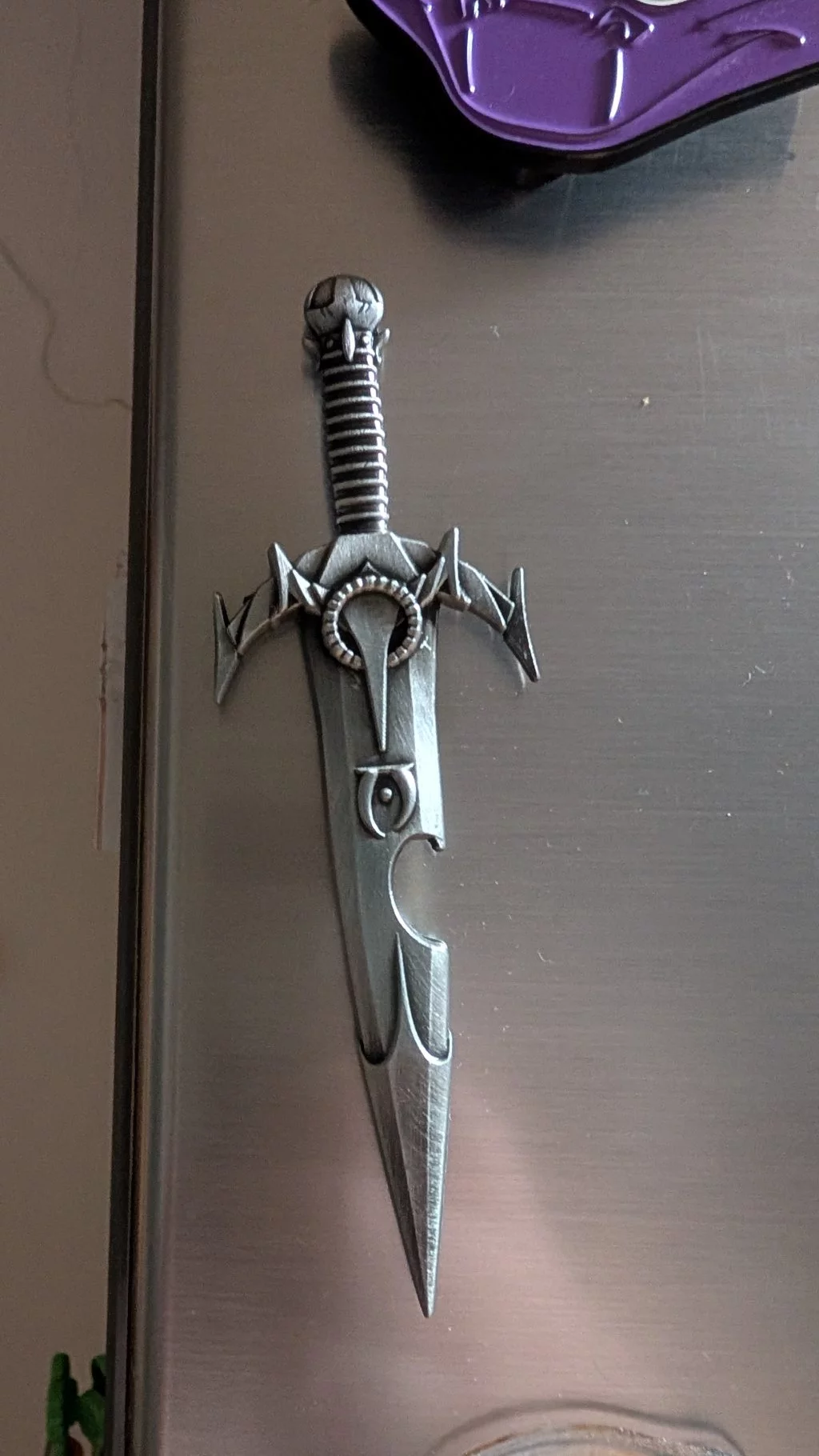 Tato oficiálně licencovaná replika ve formě otvíráku na lahve je vyrobena z kovu s povrchovou úpravou v antickém niklu a má výřez v čepeli určený k otevírání lahví. Zadní strana je opatřena magnetem pro snadné uchycení a otvírák má rozměry 120 × 40 mm.