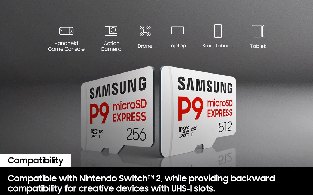 Užijte si plynulé hraní s paměťovou kartu P9 Express, která je kompatibilní s Nintendo Switch™ 2.