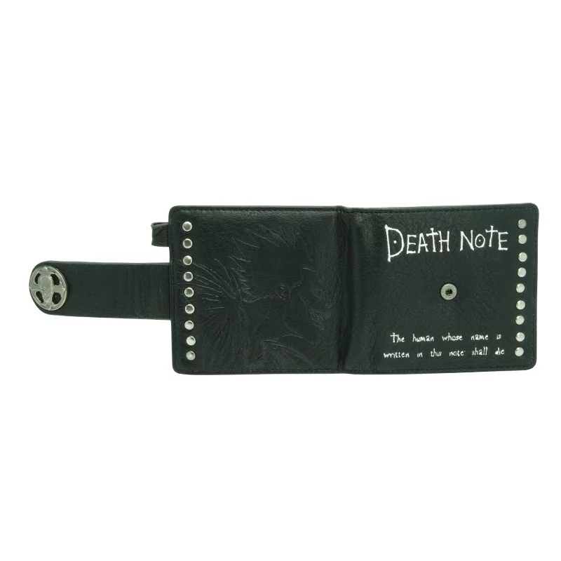 Peněženka pro všechny fanoušky oblíbené manga a anime série Death Note, kteří hledají trochu drsnější vzhled pro uložení svých financí. Peněženka má kožený vzhled, zdobí jí citát “The human whose name is written in this note shall die”, kovové doplňky a vytlačená podoba Ryuka. Najdete v ní dostatek prostoru na vaše karty, doklady i kapsičku na mince.