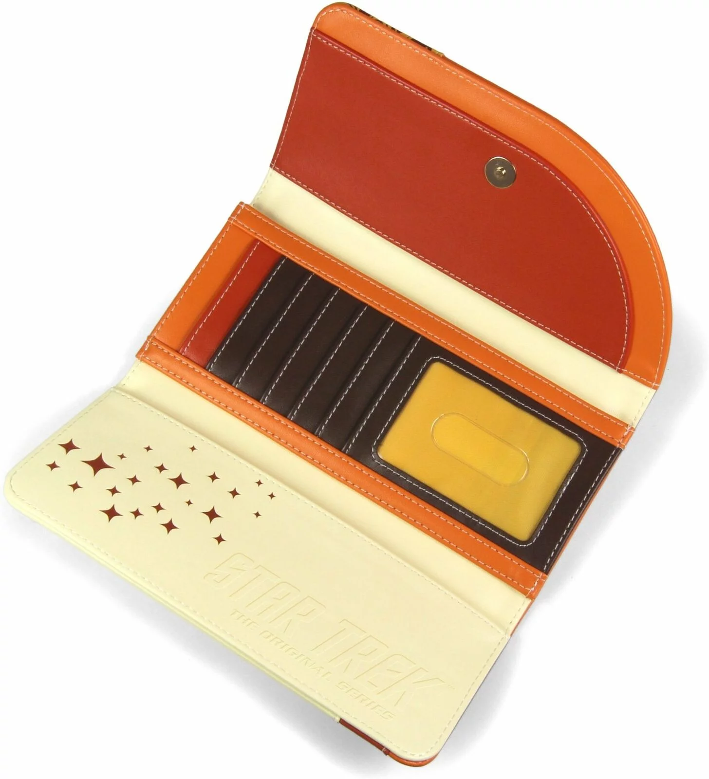Krásná retro peněženka s Uhurou ze Star Treku, která nabídne mnoho přihrádek na karty, stejně tak i prostornou kapsu na mince.