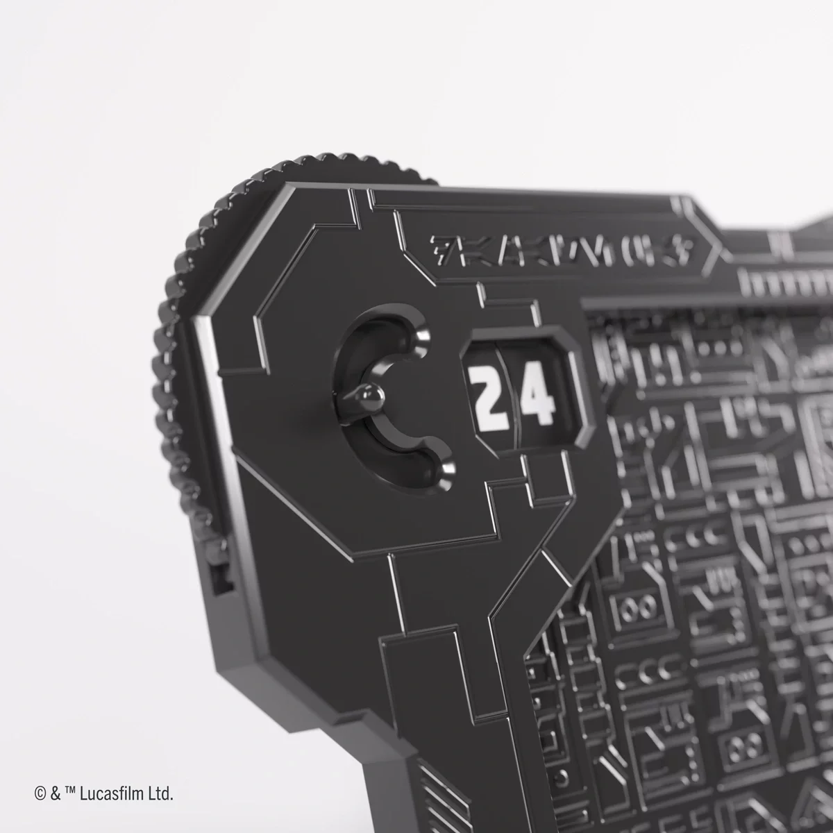 Mějte své životy a poškození vždy pod kontrolou s oficiálním počítadlem životů Damage Pad od společnosti Gamegenic! Toto elegantní počítadlo bylo speciálně navrženo pro karetní hru Star Wars: Unlimited a poskytuje snadný a přehledný způsob sledování životů během hry. Potěší vás převážně precizní otočný design který umožňuje snadné nastavení hodnoty, čitelná a kontrastní čísla které zajišťují rychlou orientaci, kompaktní a odolné provedení, ideální na turnaje i domácí hraní a luxusní Star Wars design - stylový doplněk pro fanoušky galaxie daleko, daleko odsud.