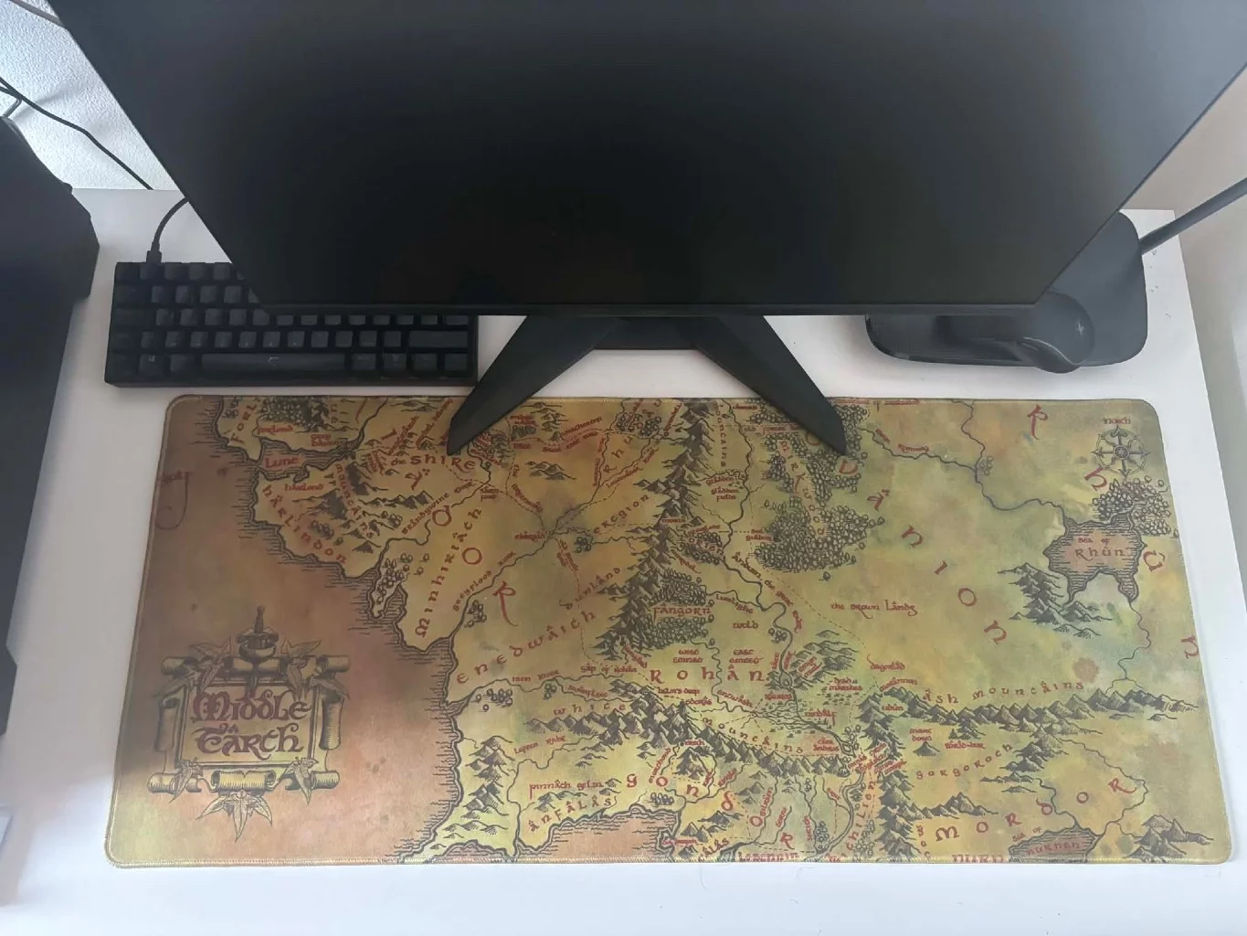 Parádní velká podložka s motivem Lord of the Rings (Pán prstenů) od spisovatele J. R. R. Tolkiena. Podložka zpracovaná do podoby mapy Středozemě je dostatečně velká pro myš i klávesnici. Hladký povrch zajišťuje skvělé vlastnosti pro pohyb myší. Krásný dárek pro všechny, kterým učaroval svět Pána prstenů.