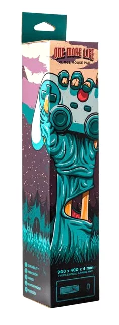 Parádní podložka XXL (90x40 cm) One More Life s RGB podsvícením. Podložka zobrazující zombie ruku svírající herní ovladač je dostatečně velká pro myš i klávesnici. Hladký povrch zajišťuje skvělé vlastnosti pro pohyb myší. Skvělý dárek pro všechny, kteří hledají větší herní podložku a zároveň chtějí něčím ozvláštnit svoje herní doupě.